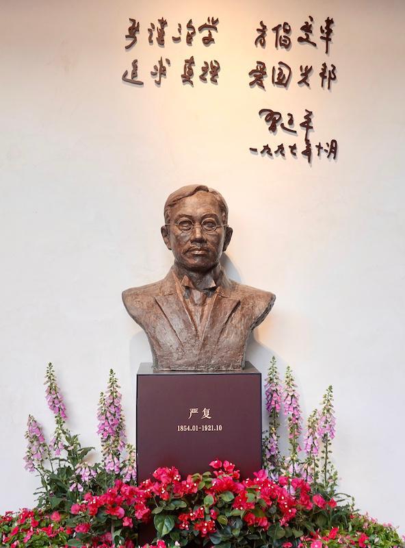 在福建,嚴(yán)復(fù)一直是家鄉(xiāng)人民的驕傲。在福建工作期間,習(xí)近平總書記曾多次參加紀(jì)念嚴(yán)復(fù)的相關(guān)活動,他稱贊嚴(yán)復(fù)“高舉科學(xué)與愛國兩面大旗”,認(rèn)為“時至今日,嚴(yán)復(fù)的科學(xué)與愛國思想仍不過時”。這次來閩考察期間,習(xí)近平總書記專程來到嚴(yán)復(fù)故居。跟隨著總書記的腳步,黨員們在故居展廳了解嚴(yán)復(fù)的生平與功績,學(xué)習(xí)嚴(yán)復(fù)思想,深入認(rèn)識嚴(yán)復(fù)先生“嚴(yán)謹(jǐn)治學(xué),首倡變革,追求真理,愛國興邦”的品格。