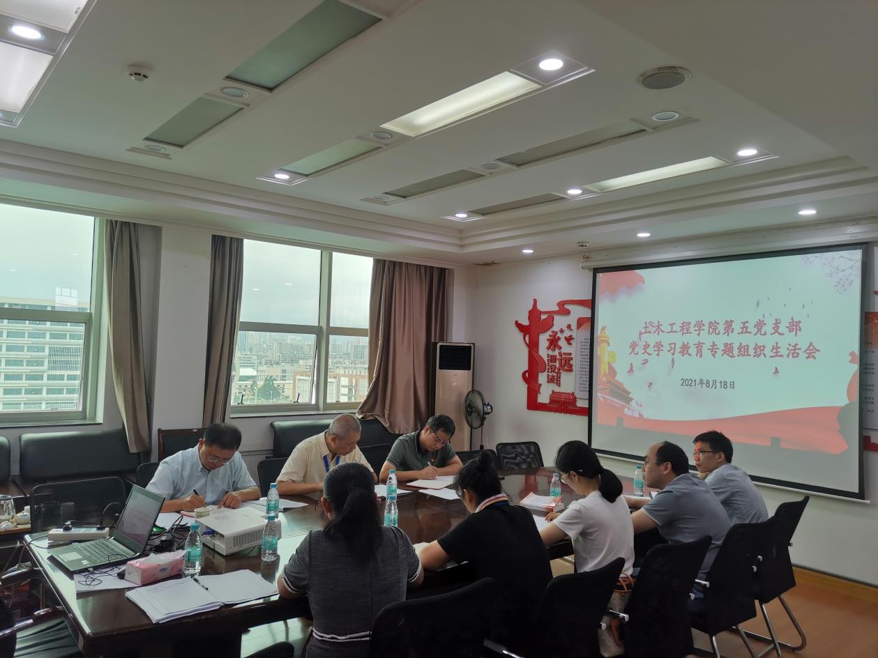 按照黨史學(xué)習(xí)教育統(tǒng)一安排,818日下午,土木工程學(xué)院第五黨支部召開黨史學(xué)習(xí)教育專題組織生活會,學(xué)院黨委書記張海明同志以普通黨員身份參加,與支部黨員一起深入學(xué)習(xí)領(lǐng)會習(xí)近平總書記“七一”重要講話精神。