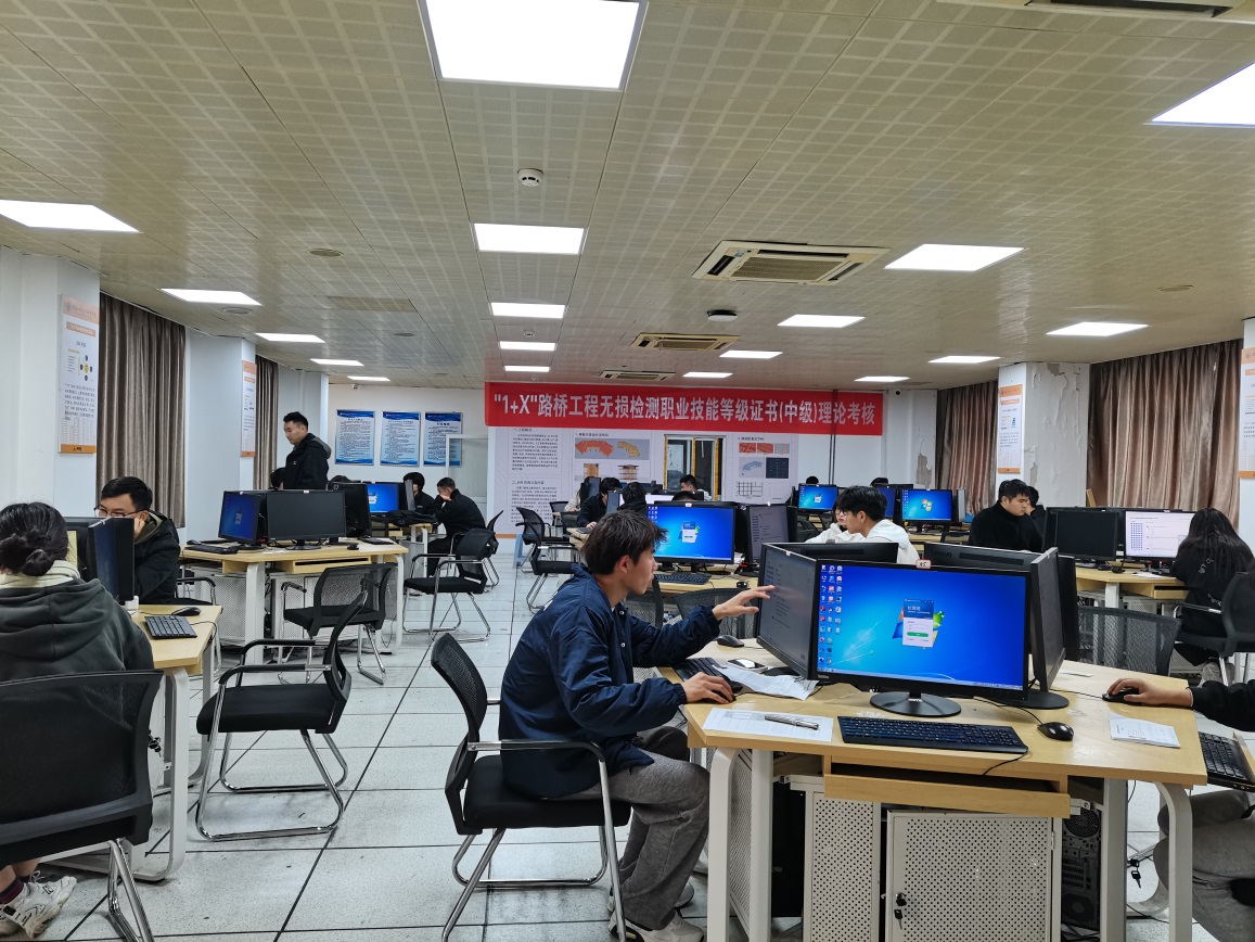 為深入貫徹教育部1+X證書制度試點(diǎn)工作相關(guān)精神,推進(jìn)職業(yè)技能等級證書考試工作,展現(xiàn)我校辦學(xué)特色與成效,2022年1月9日,“1+X” 路橋工程無損檢測職業(yè)技能等級證書(中級)首批考試在我校順利進(jìn)行,道路與橋梁工程技術(shù)專業(yè)和建設(shè)工程監(jiān)理專業(yè)23名學(xué)生參加了考試。