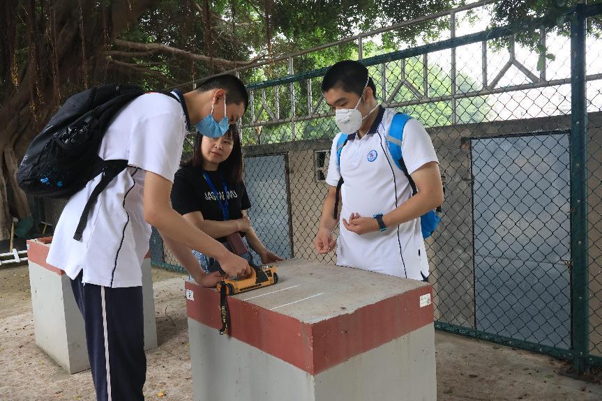 接著,學(xué)生們由老師帶領(lǐng)進(jìn)入智慧檢測(cè)實(shí)訓(xùn)基地結(jié)構(gòu)檢測(cè)區(qū),學(xué)生們認(rèn)真傾聽老師的講解與演示、積極提問(wèn),并在指導(dǎo)下親自使用鋼筋位置及保護(hù)層厚度檢測(cè)儀來(lái)檢測(cè)、標(biāo)注出檢測(cè)試塊中鋼筋的位置,過(guò)程中展示出了極大的學(xué)習(xí)探索的興趣與樂(lè)趣。