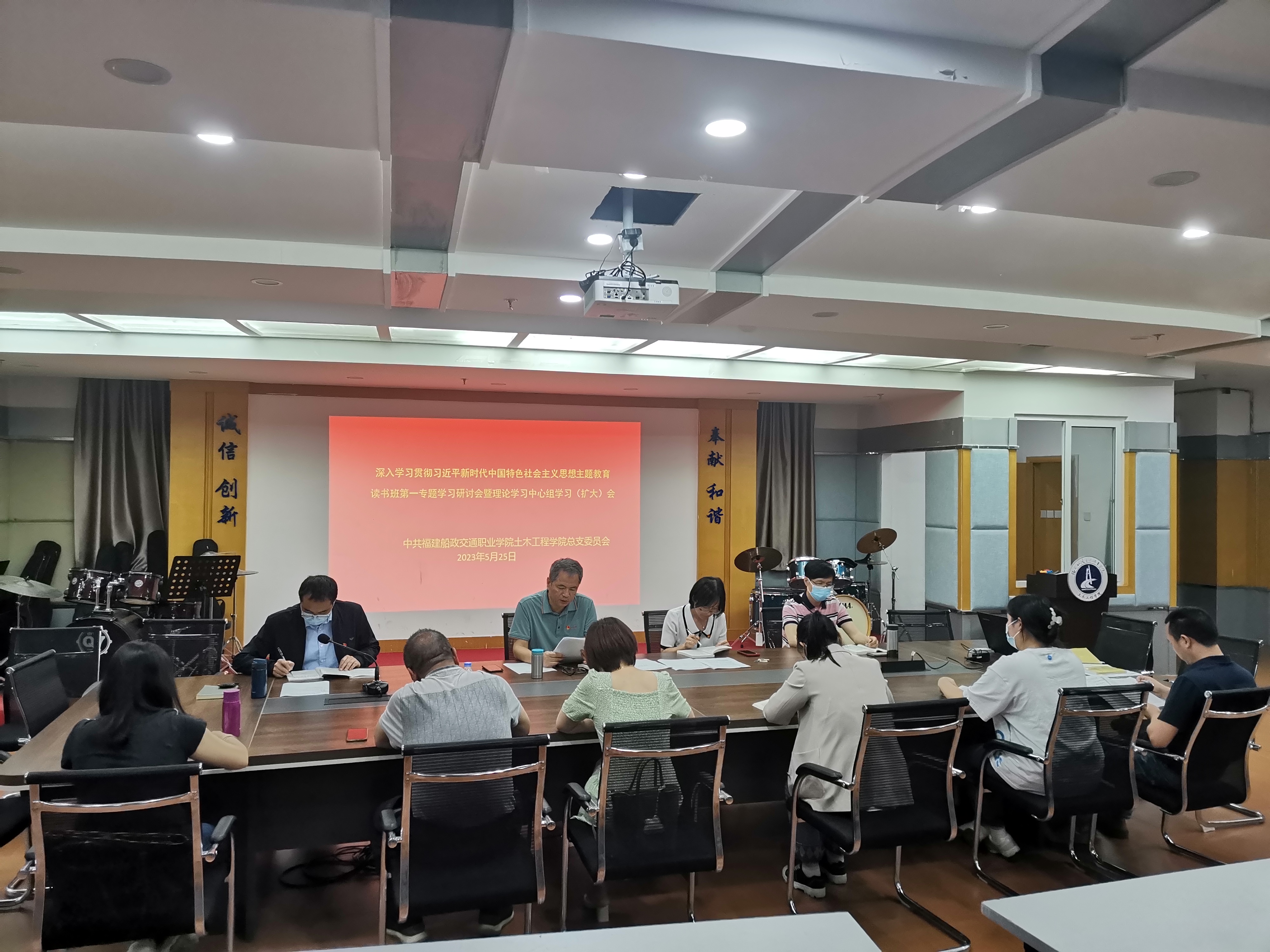 5月25日晚上,土木工程學(xué)院黨總支在創(chuàng)新樓1007召開深入開展學(xué)習(xí)貫徹習(xí)近平新時(shí)代中國(guó)特色社會(huì)主義思想主題教育讀書班第一專題學(xué)習(xí)研討會(huì)暨理論學(xué)習(xí)中心組學(xué)習(xí)(擴(kuò)大)會(huì),圍繞“凝心鑄魂筑牢根本——堅(jiān)持不懈用習(xí)近平新時(shí)代中國(guó)特色社會(huì)主義思想鑄魂育人”主題開展集中學(xué)習(xí)研討。土木工程學(xué)院黨總支成員、主題教育領(lǐng)導(dǎo)小組成員、各支部書記、副書記、實(shí)訓(xùn)中心負(fù)責(zé)人參加了學(xué)習(xí)會(huì)。土木工程學(xué)院黨總支書記、土木工程學(xué)院黨總支主題教育領(lǐng)導(dǎo)小組組長(zhǎng)高杰主持會(huì)議并作中心發(fā)言,支部書記林森茂、王美春作交流發(fā)言。