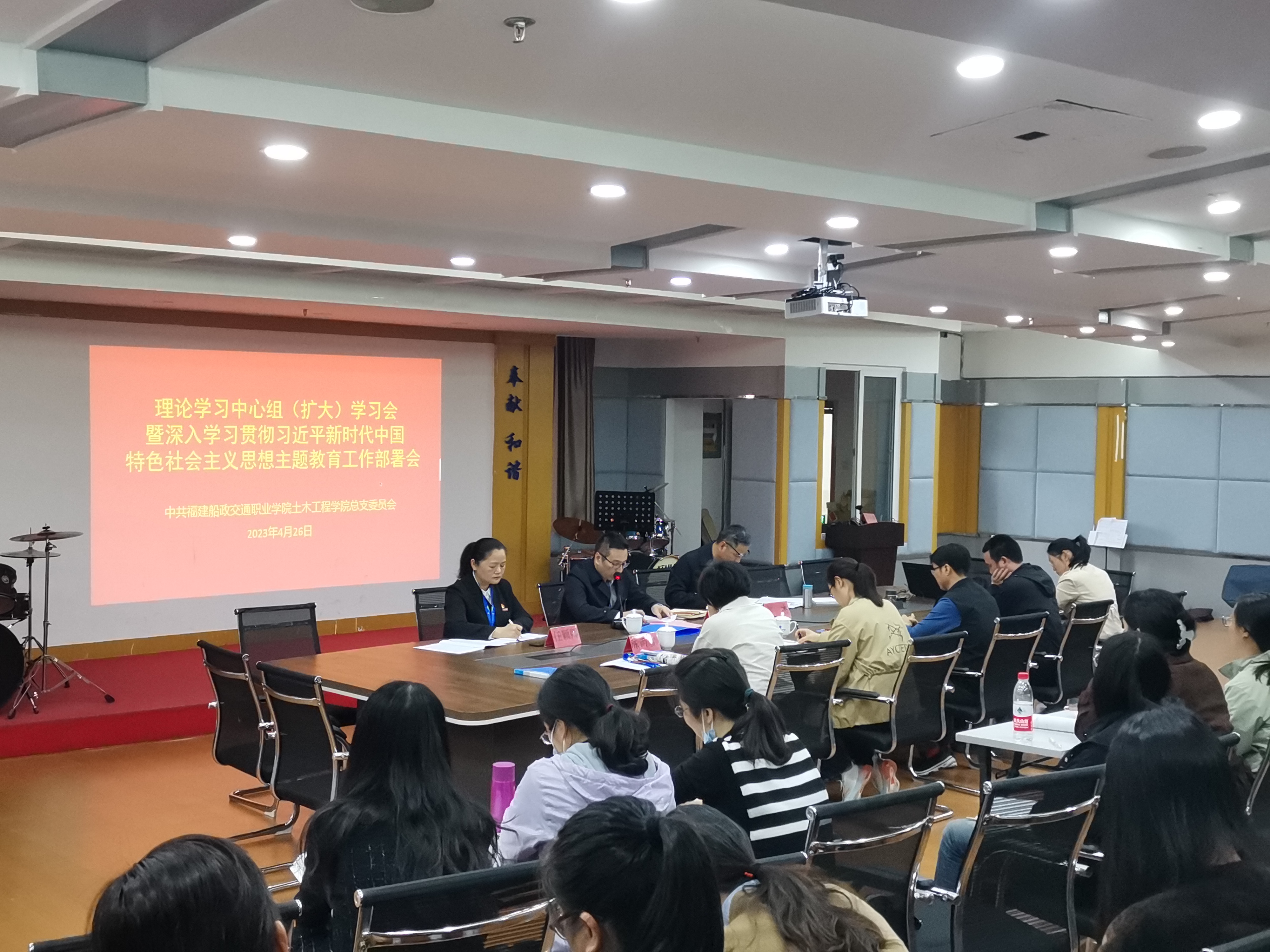 4月26日下午,土木工程學(xué)院黨總支在創(chuàng)新樓1007召開黨總支理論學(xué)習(xí)中心組(擴(kuò)大)學(xué)習(xí)會暨深入開展學(xué)習(xí)貫徹習(xí)近平新時代中國特色社會主義思想主題教育工作部署會。學(xué)校黨委主題教育協(xié)調(diào)推進(jìn)三組劉勇峰組長及成員劉佳、陳雨雪出席會議。土木工程學(xué)院主題教育領(lǐng)導(dǎo)小組成員、副科級以上干部、黨支部書記、副書記、教師黨員、學(xué)生黨員代表參加了會議。