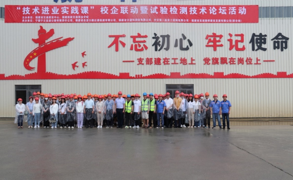 為深入貫徹黨的二十大精神和習(xí)近平總書記關(guān)于職業(yè)教育的重要指示批示精神,扎實(shí)開展學(xué)習(xí)貫徹習(xí)近平新時(shí)代中國特色社會主義思想主題教育,深入實(shí)施“深學(xué)爭優(yōu)、敢為爭先、實(shí)干爭效”行動,深入開展“校企融合、校企聯(lián)動”,引導(dǎo)學(xué)生做好應(yīng)對將來就業(yè)的思想和技能理論準(zhǔn)備,2023年6月7日,在福建省交通質(zhì)安中心和福建船政交通職業(yè)學(xué)院土木工程學(xué)院聯(lián)合精心部署安排下,土木工程學(xué)院黨總支赴寧古高速C1合同段,與寧德寧古高速公路有限責(zé)任公司、部分檢測機(jī)構(gòu)及項(xiàng)目參建單位共同開展“當(dāng)好交通建設(shè)‘開路先鋒’打造校企質(zhì)安思政品牌”主題黨日活動暨“技術(shù)進(jìn)業(yè)實(shí)踐課”校企聯(lián)動暨試驗(yàn)檢測技術(shù)論壇活動。