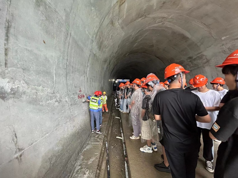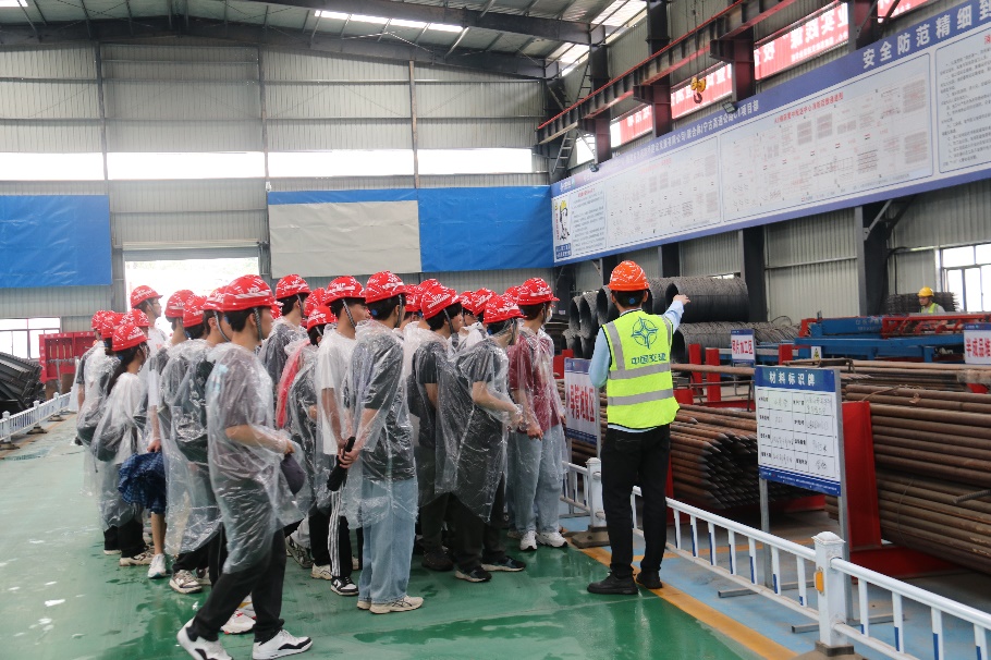21道路與橋梁工程技術(shù)專業(yè)學(xué)生還前往路基、隧道施工現(xiàn)場開展“1+1”試驗(yàn)檢測聯(lián)動教學(xué)師帶徒主題活動。隧道施工現(xiàn)場試驗(yàn)檢測,主要包括二襯地質(zhì)雷達(dá)檢測、大面平整度檢測?,F(xiàn)場檢測人員首先向?qū)W生講解檢測原理及步驟,接著在現(xiàn)場人員的指導(dǎo)下學(xué)生依次完成了檢測項(xiàng)目。在試驗(yàn)結(jié)束后,學(xué)生們前往鋼筋加工廠,加工廠里的智能器械設(shè)備和往日一樣忙于各式各樣的鋼筋加工,學(xué)生們也通過現(xiàn)場人員的講解以及近距離觀察,對鋼筋加工有了更深入的了解。