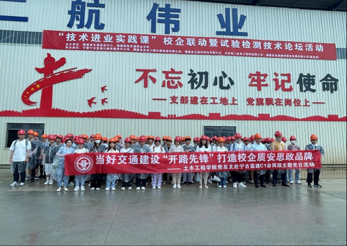 本次活動以黨建引領(lǐng)當(dāng)好“開路先鋒”創(chuàng)建活動為主要載體,通過深化校企聯(lián)合,推動“學(xué)習(xí)、專研、實(shí)操”雙輪驅(qū)動的方式,打造出引領(lǐng)作用好、標(biāo)桿效應(yīng)強(qiáng)的共建示范點(diǎn),以點(diǎn)帶面,既有效提高試驗(yàn)檢測人員的職業(yè)道德水平和專業(yè)技術(shù)能力,確保試驗(yàn)檢測數(shù)據(jù)的客觀性、科學(xué)性和準(zhǔn)確性,又加深了學(xué)生們對于施工現(xiàn)場的認(rèn)知,學(xué)習(xí)到更多檢測試驗(yàn)的知識與技能。