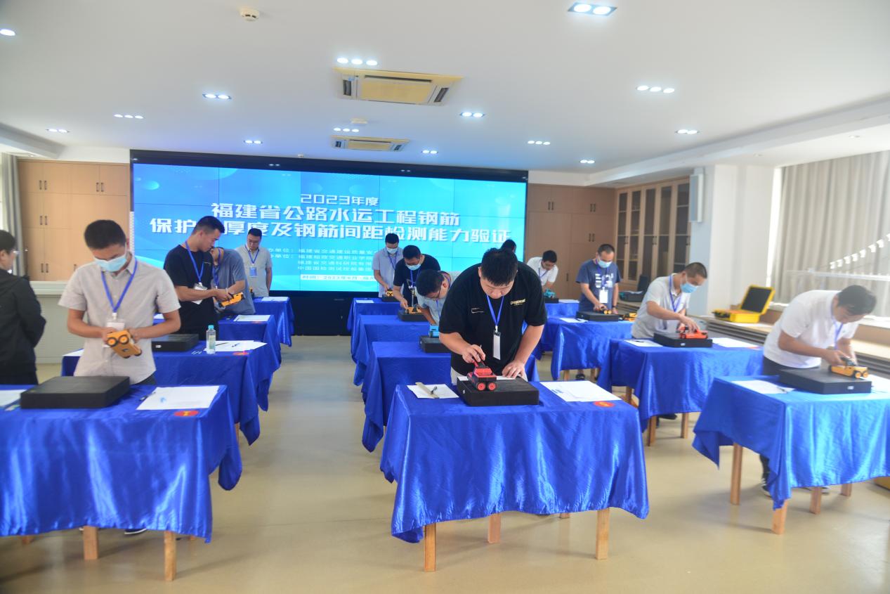 6月16日,2023年度福建省公路水運(yùn)工程鋼筋保護(hù)層厚度及鋼筋間距檢測(cè)能力驗(yàn)證及“技術(shù)進(jìn)業(yè)實(shí)踐課”校企聯(lián)動(dòng)暨試驗(yàn)檢測(cè)技術(shù)論壇活動(dòng)在我院順利舉辦。本次活動(dòng)由福建省交通質(zhì)安中心主辦,福建船政交通職業(yè)學(xué)院土木工程學(xué)院、福建省交通科研院有限公司、中國國檢測(cè)試控股集團(tuán)股份有限公司共同協(xié)辦,全省60家試驗(yàn)檢測(cè)機(jī)構(gòu)與公路水運(yùn)工程工地試驗(yàn)室參與,是我省公路水運(yùn)工程試驗(yàn)檢測(cè)行業(yè)的盛會(huì)。