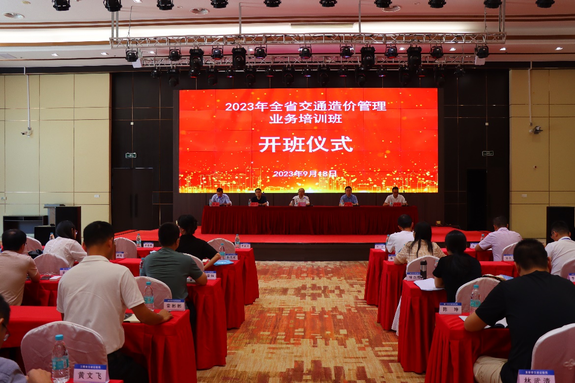 9月18日,2023年全省交通造價(jià)管理業(yè)務(wù)培訓(xùn)班在學(xué)院武夷新區(qū)職教園開(kāi)班,福建省交通造價(jià)站站長(zhǎng)黃善明、省交通運(yùn)輸廳審計(jì)處四級(jí)調(diào)研員李道全、廣東省交通運(yùn)輸工程造價(jià)事務(wù)中心總工易萬(wàn)中、福建船政交通職業(yè)學(xué)院土木學(xué)院副院長(zhǎng)朱明栓及來(lái)自全省各地市交通運(yùn)輸局和廳直單位的技術(shù)骨干近100人參加開(kāi)班儀式。開(kāi)班儀式由省交通造價(jià)站副站長(zhǎng)繆偉主持。