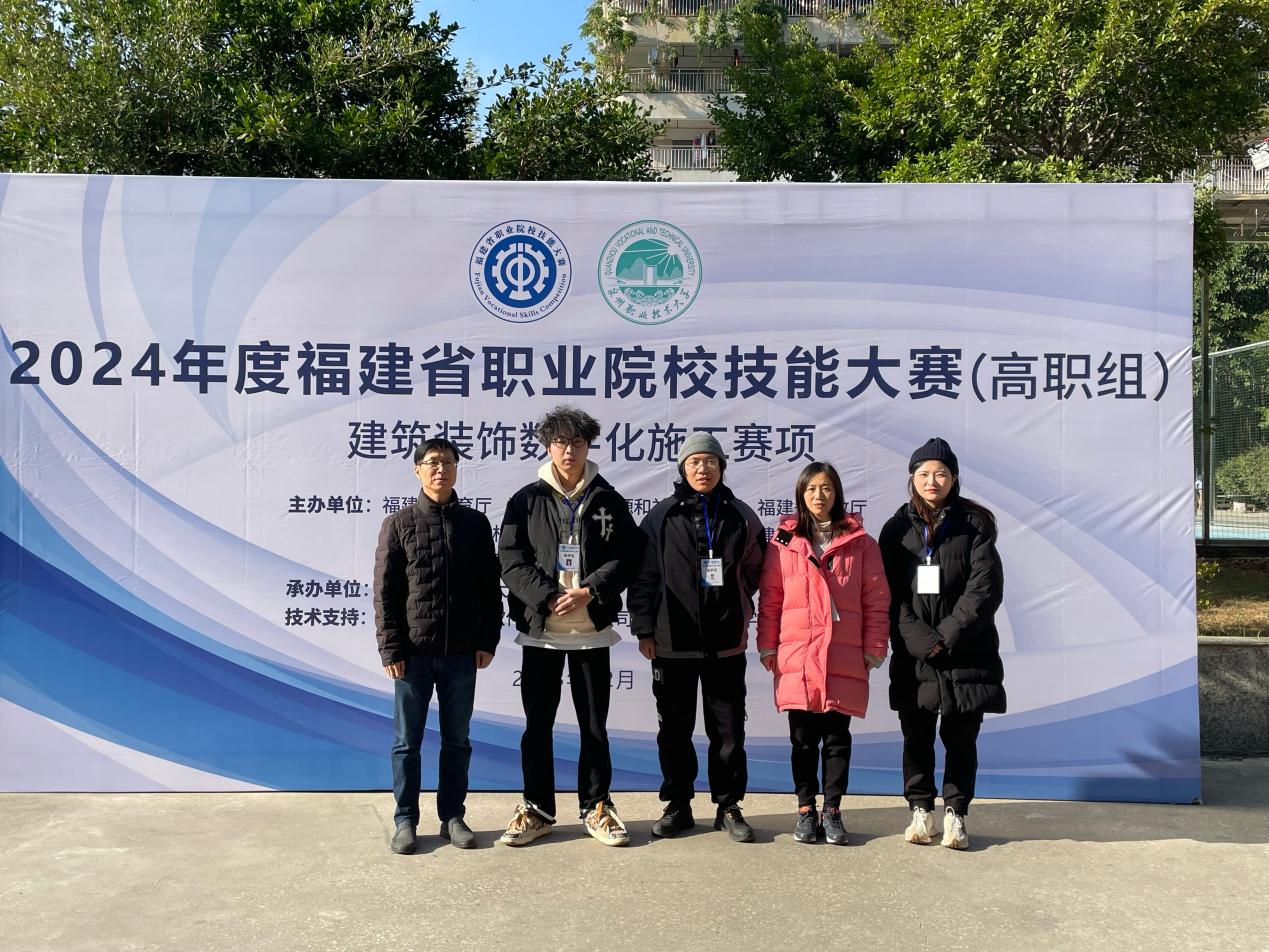 12月22日至24日, 2024年福建省職業(yè)院校技能大賽(高職組)建筑裝飾數(shù)字化施工賽項(xiàng)在泉州職業(yè)技術(shù)大學(xué)舉行。來自福建省職業(yè)院校的25支代表隊(duì),75名師生選手參賽同臺競技。我校參賽隊(duì)伍由土木工程學(xué)院盧娜(教師)和葉浩錦(學(xué)生)、謝昊霖(學(xué)生)組成師生參賽團(tuán)隊(duì)。我院師生團(tuán)隊(duì)扎實(shí)奮戰(zhàn),榮獲省賽二等獎。