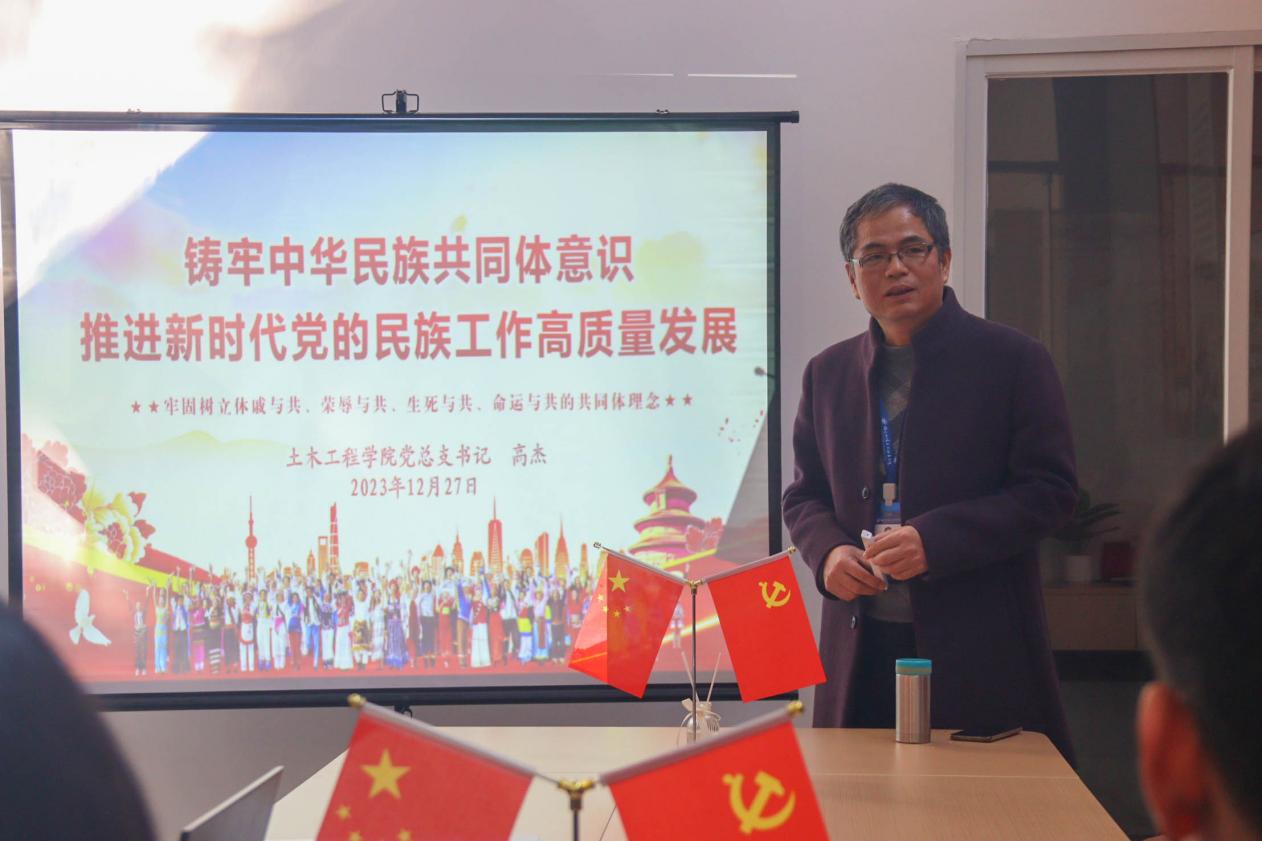 為學習貫徹習近平新時代中國特色社會主義思想和黨的二十大精神,進一步加強和踐行社會主義核心價值觀,大力弘揚愛國主義精神,不斷加強民族團結進步教育,共同鑄牢中華民族共同體意識,2023年12月27日下午,土木工程學院黨總支書記高杰同志在福航園“一站式”學生社區(qū)服務中心思政引領室以《鑄牢中華民族共同體意識,推進新時代黨的民族工作高質量發(fā)展》為主題給青年學生上專題思政課。
