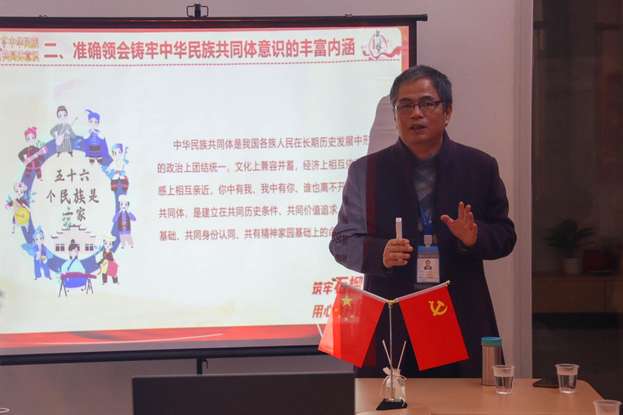 高杰同志首先帶領同學一起學習了習近平總書記在主持中共中央政治局第九次集體學習時發(fā)表的重要講話,緊接著,圍繞“充分認清鑄牢中華民族共同體意識的重大意義”、“準確領會鑄牢中華民族共同體意識的豐富內(nèi)涵”、“牢牢把握鑄牢中華民族共同體意識的實踐途徑”三個方面,對鑄牢中華民族共同體意識進行全面深入講解。