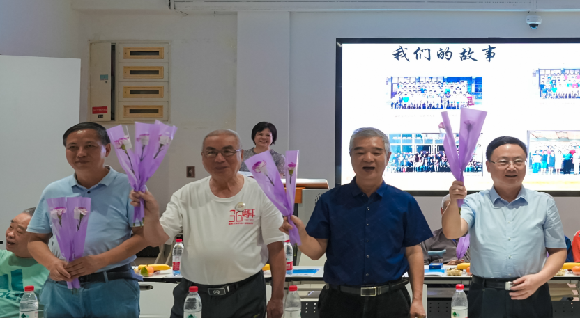 周志堅、歐金觀、鄭益民等退休老教師,一一與校友們分享了在學校工作時的美好回憶,并給校友們送上美好祝福。校友也給他們尊敬的老師們獻上鮮花,祝愿老師們身體健康。
