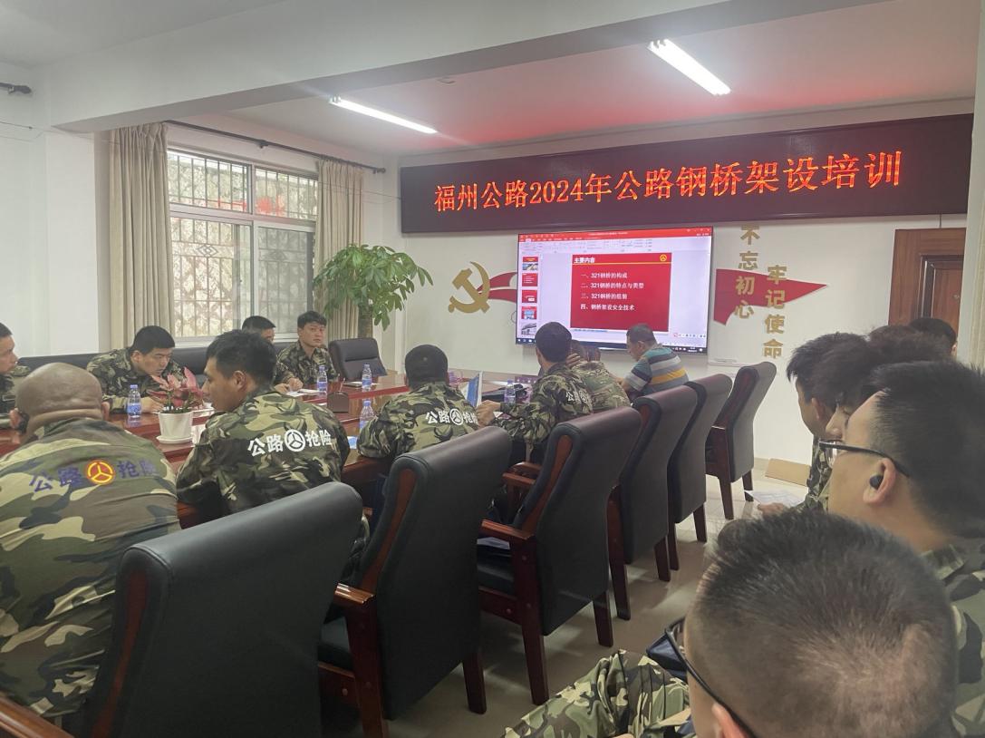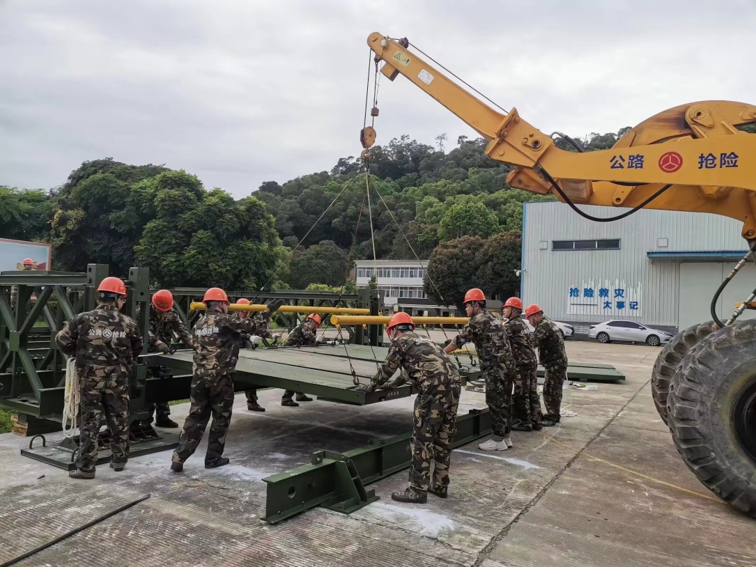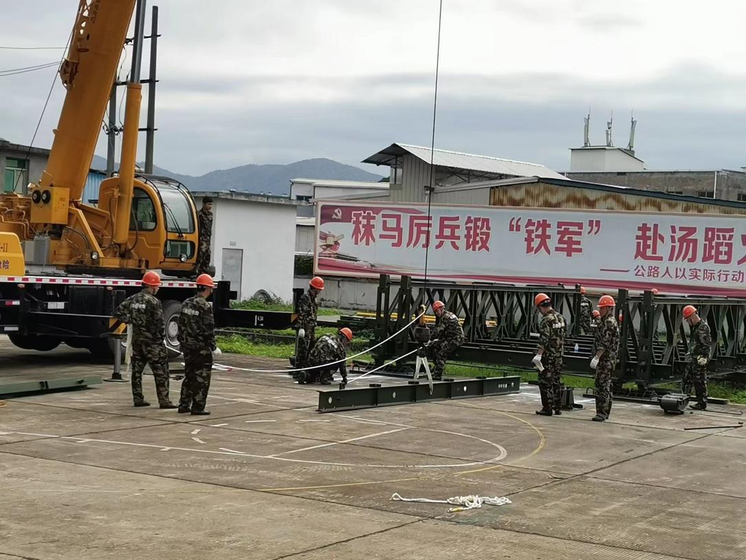 為切實(shí)提高公路搶險(xiǎn)工作效率,培養(yǎng)鋼橋架設(shè)技術(shù)骨干,提高突發(fā)事件處置能力,進(jìn)一步夯實(shí)鋼橋架設(shè)隊(duì)伍服務(wù)、應(yīng)急、應(yīng)戰(zhàn)一體化建設(shè),本次培訓(xùn)分為理論學(xué)習(xí)和技能訓(xùn)練。理論學(xué)習(xí)采用集中培訓(xùn)的方式,系統(tǒng)學(xué)習(xí)應(yīng)急人員自護(hù)自救常識(shí)、安全架設(shè)鋼橋要求和基本要領(lǐng)、應(yīng)急搶險(xiǎn)指揮信息設(shè)備操作常識(shí)等內(nèi)容;技能訓(xùn)練采取集中學(xué)習(xí)、分組練習(xí)和綜合演練的組訓(xùn)方式,組織戰(zhàn)備鋼橋架設(shè)的系統(tǒng)訓(xùn)練和綜合演練。