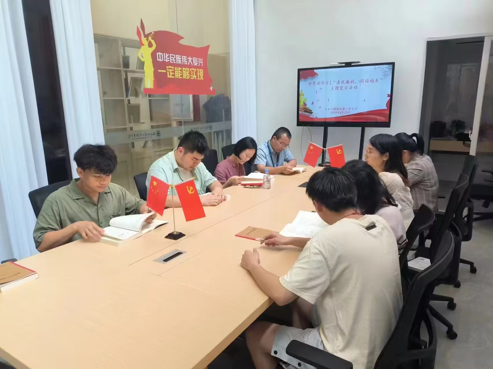 在世界讀書日來(lái)臨之際,2024年4月23日,土木工程學(xué)院第一黨支部在“一站式”學(xué)生服務(wù)中心會(huì)議室開(kāi)展了“清風(fēng)廉韻 閱讀悅美”主題黨日活動(dòng),通過(guò)落實(shí)第一議題學(xué)習(xí)、讀書沙龍等活動(dòng),搭建黨員干部交流平臺(tái),磨礪清廉干凈品質(zhì),進(jìn)一步弘揚(yáng)廉潔文化,營(yíng)造支部風(fēng)清氣正、崇廉尚廉的濃厚氛圍。
