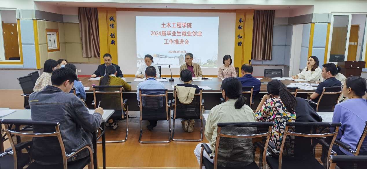 為全力促進(jìn)高校畢業(yè)生高質(zhì)量充分就業(yè),進(jìn)一步做好2024屆畢業(yè)生就業(yè)創(chuàng)業(yè)工作相關(guān)部署,4月25日下午,土木工程學(xué)院在創(chuàng)新樓1007會(huì)議室召開(kāi)2024屆畢業(yè)生就業(yè)創(chuàng)業(yè)工作推進(jìn)會(huì)。學(xué)院領(lǐng)導(dǎo)班子、各教研室主任及畢業(yè)班輔導(dǎo)員參加了會(huì)議,會(huì)議由黨總支副書(shū)記任穎卿主持。