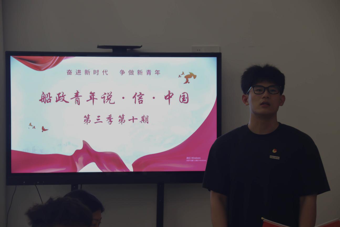 為深入學(xué)習(xí)宣傳貫徹習(xí)近平新時(shí)代中國(guó)特色社會(huì)主義思想和黨的二十大精神,推動(dòng)黨史學(xué)習(xí)教育常態(tài)化長(zhǎng)效化,鞏固拓展學(xué)習(xí)貫徹習(xí)近平新時(shí)代中國(guó)特色社會(huì)主義思想主題教育成果,深入實(shí)施“深學(xué)爭(zhēng)優(yōu)、敢為爭(zhēng)先、實(shí)干爭(zhēng)效”行動(dòng),引導(dǎo)青年學(xué)生厚植家國(guó)情懷,增強(qiáng)當(dāng)代青年學(xué)生的“信仰”、“信念”、“信心”、“自信”、“信服”,2024年3月28日晚上,《船政青年說·信·中國(guó)》第三季第十期線下分享會(huì)在“一站式”學(xué)生社區(qū)服務(wù)大廳思政引領(lǐng)室舉行。