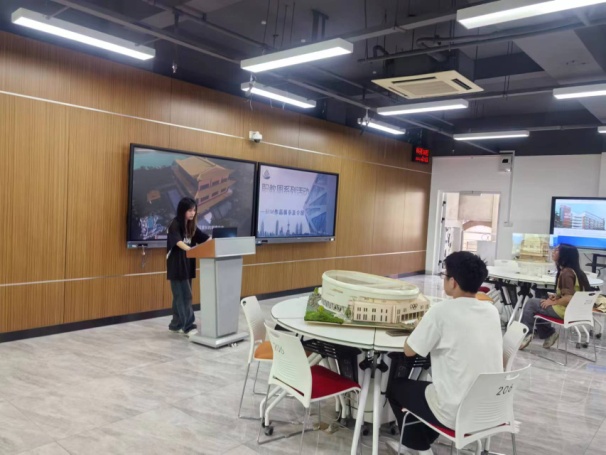 最后,社團成員鄭詩煜同學帶來了“體藝樓”的虛實模型展示。這一作品將虛擬現(xiàn)實(VR)技術與BIM模型相結合,為觀眾提供了一種全新的建筑體驗。通過VR頭盔,觀眾仿佛置身于建筑之中,可以直觀地感受到建筑的空間布局和設計細節(jié)。
