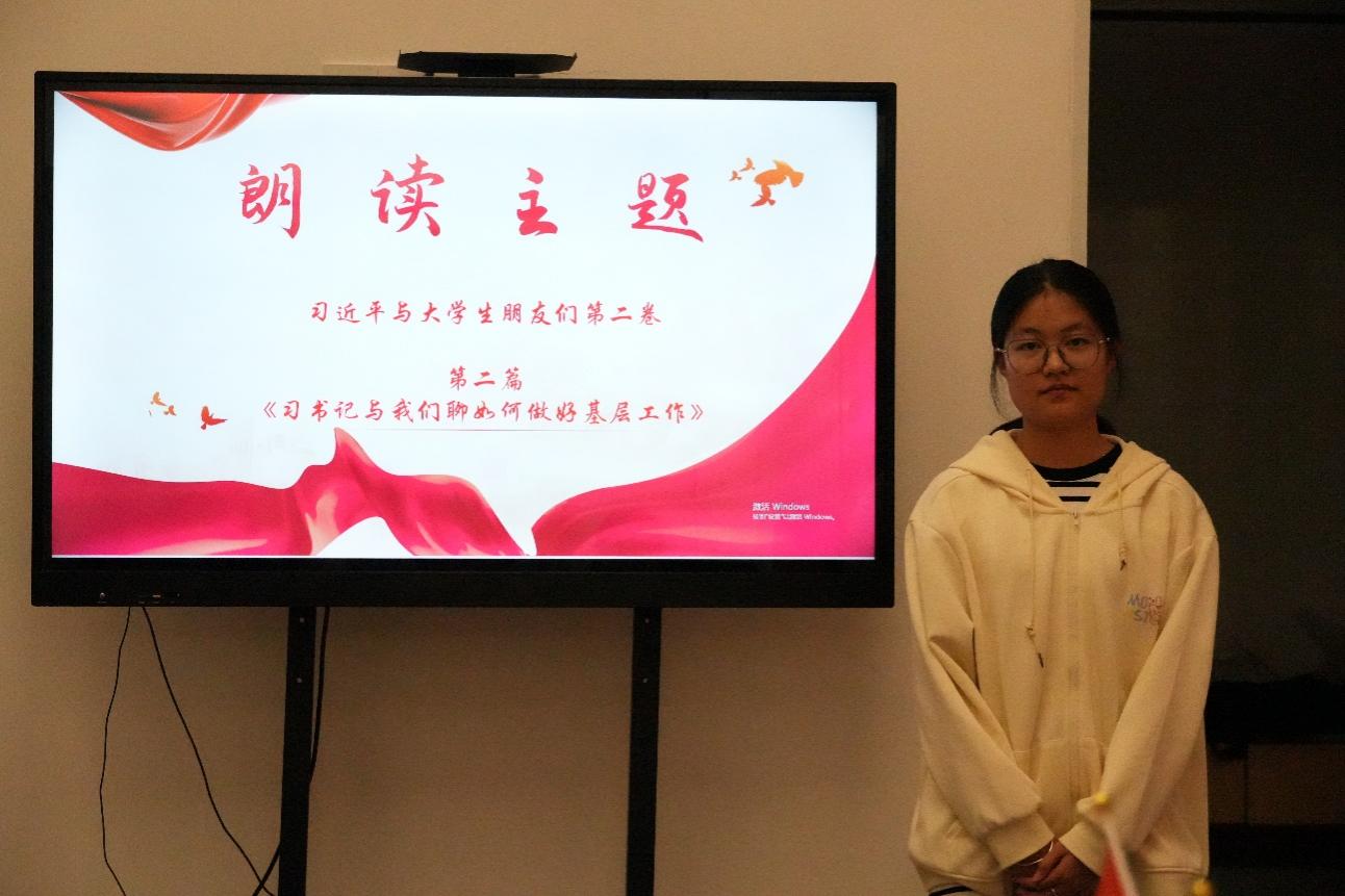 分享會(huì)上,2023級(jí)建筑裝飾工程技術(shù)2班組織委員柳慧欣,領(lǐng)學(xué)朗讀了,《習(xí)近平與大學(xué)生朋友們》第二卷第二篇《習(xí)書(shū)記與我們聊如何做好基層工作》,從中我深切地感受到了習(xí)近平總書(shū)記對(duì)于基層工作的極度關(guān)注以及他對(duì)年輕學(xué)生們的深深關(guān)懷。