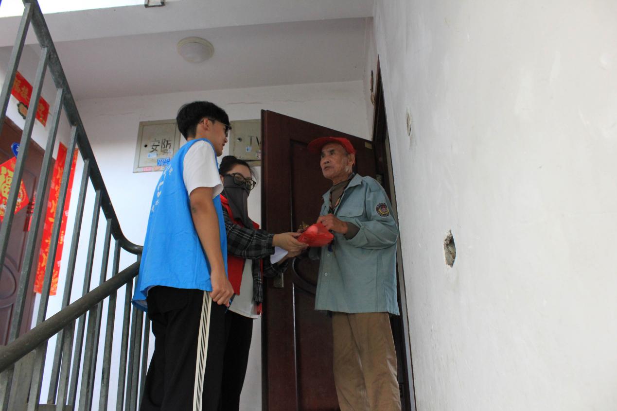 隨著套圈活動(dòng)的圓滿結(jié)束,志愿者們分組行動(dòng),帶著掛面和雞蛋等慰問(wèn)品,踏上了入戶慰問(wèn)的旅程。志愿者為老人們送去了節(jié)日問(wèn)候和美好祝福,每一份禮物,都承載著對(duì)老人們的敬意和祝福。