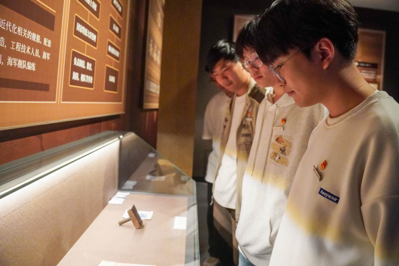 “一座船政博物館,半部海事圖強(qiáng)史?!敝袊?guó)船政文化博物館承載著船政彌足珍貴的歷史印記和精神內(nèi)涵。培訓(xùn)班學(xué)員跟隨著帶隊(duì)老師先后參觀了博物館的“千年變局、船政誕生、船政教育、船政制造、船政海軍和船政文化”等6個(gè)展區(qū),通過(guò)漆畫浮雕、文物展品、歷史照片、模型、裸眼3D展示等,深入了解中國(guó)船政先驅(qū)者在近代中國(guó)先進(jìn)科技、人才培育、海軍建設(shè)、西方經(jīng)典文化翻譯傳播等方面做出的積極探索和取得的輝煌成果,感嘆于船政人的創(chuàng)新精神和開(kāi)拓精神,從中深刻體悟“愛(ài)國(guó)、科學(xué)、創(chuàng)新、圖強(qiáng)”的船政精神。