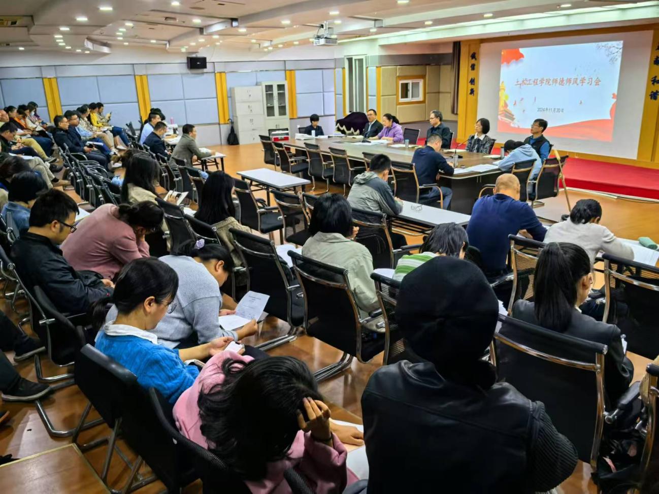 11月20日,土木工程學(xué)院在創(chuàng)新樓1007召開師德師風(fēng)專題學(xué)習(xí)會(huì)。土木工程學(xué)院全體教職工參加本次會(huì)議,會(huì)議由黨總支書記高杰同志主持。