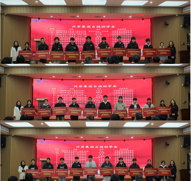 興巖集團(tuán)獎(jiǎng)助學(xué)金,是福建省興巖建設(shè)集團(tuán)有限公司于2023年在我院捐資100萬(wàn)元設(shè)立,旨在獎(jiǎng)勵(lì)和資助我院土木工程學(xué)院德智體美勞全面發(fā)展的優(yōu)秀學(xué)生及品學(xué)兼優(yōu)、家庭經(jīng)濟(jì)困難學(xué)生,每年獎(jiǎng)助40名同學(xué)。本次是興巖集團(tuán)獎(jiǎng)助學(xué)金第二次發(fā)放,院企將以此為契機(jī),繼續(xù)在技術(shù)服務(wù)、科學(xué)研究、人才培養(yǎng)等方面開(kāi)展系列合作,推動(dòng)產(chǎn)教深度融合,協(xié)同創(chuàng)新,實(shí)現(xiàn)互利共贏。