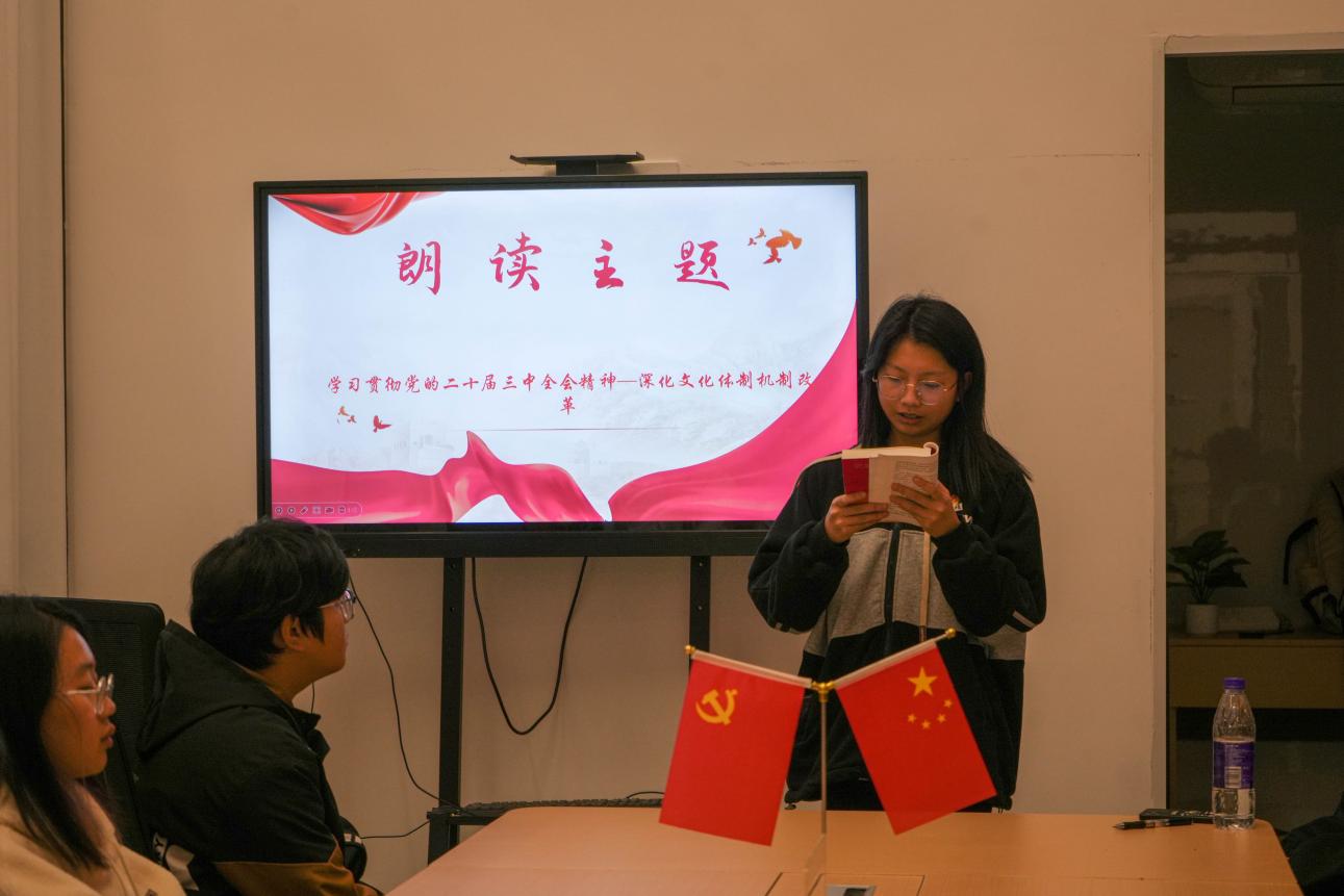 分享會(huì)上,2024級(jí)測(cè)繪地理信息技術(shù)1班權(quán)益委員許夢(mèng)瀅,領(lǐng)學(xué)朗讀了《中共中央關(guān)于進(jìn)一步全面深化改革、推進(jìn)中國(guó)式現(xiàn)代化的決定》(后文簡(jiǎn)稱《決定》)“深化文化體制機(jī)制改革”部分。
