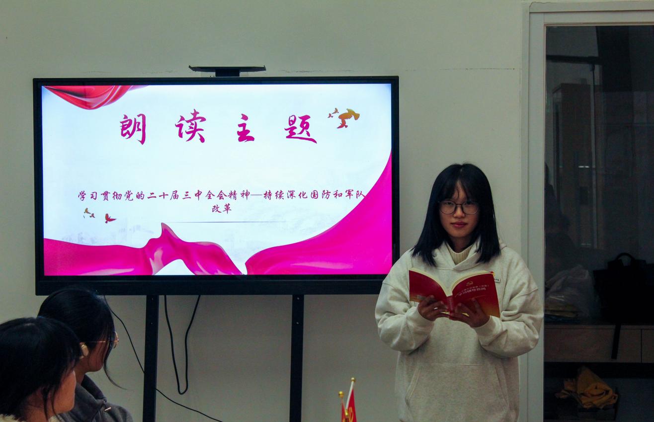 分享會(huì)上,2024級(jí)市政工程技術(shù)1班團(tuán)支書張鈺楓,領(lǐng)學(xué)朗讀了《中共中央關(guān)于進(jìn)一步全面深化改革、推進(jìn)中國(guó)式現(xiàn)代化的決定》(后文簡(jiǎn)稱《決定》)“持續(xù)深化國(guó)防和軍隊(duì)改革”部分。