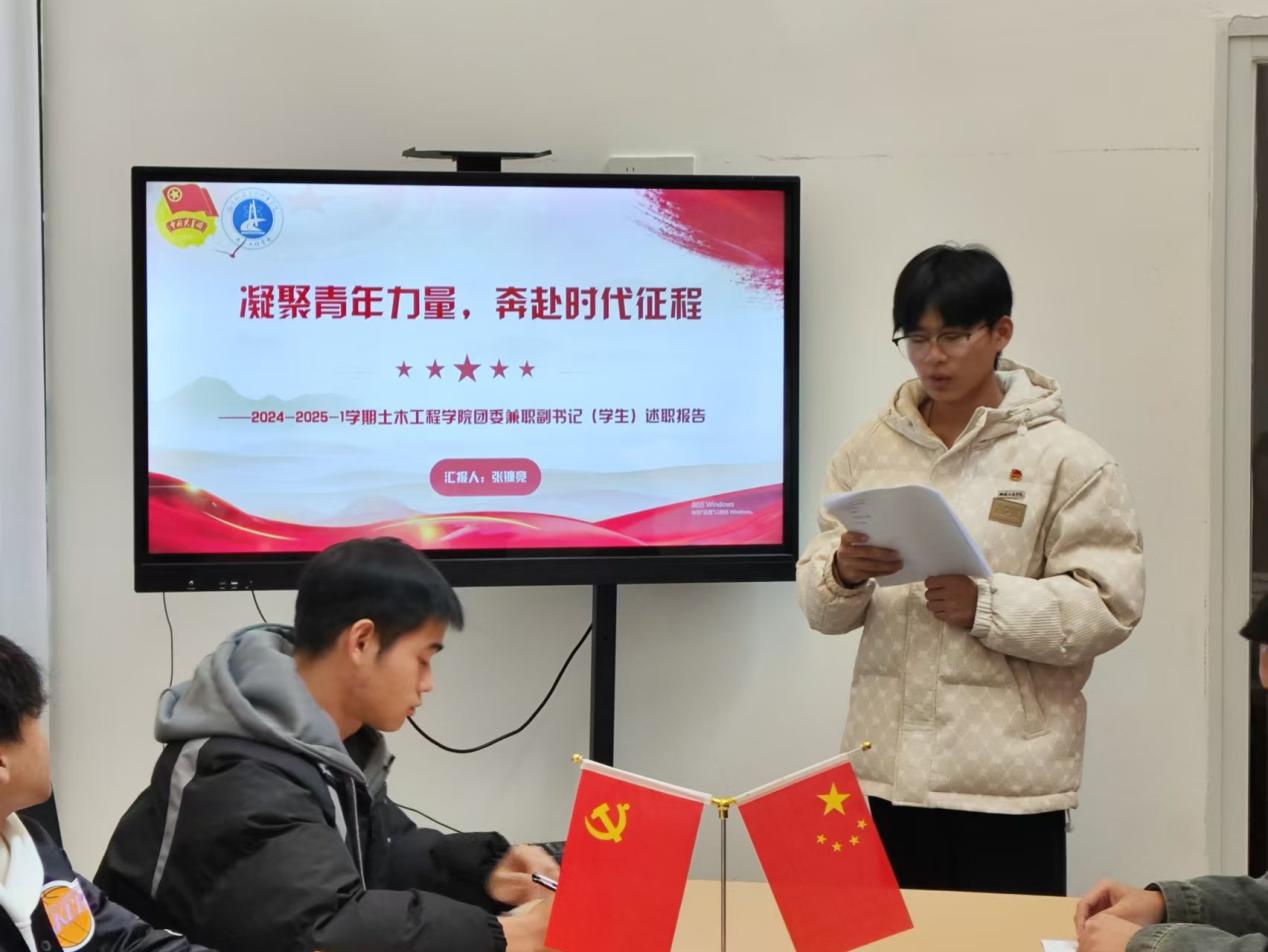為加強(qiáng)團(tuán)學(xué)組織工作制度化、規(guī)范化、系統(tǒng)化,提高學(xué)生干部的服務(wù)能力,發(fā)揮團(tuán)學(xué)組織聯(lián)系廣大同學(xué)的橋梁和紐帶作用,總結(jié)工作成果、反思工作不足、提高工作效率、增強(qiáng)團(tuán)隊(duì)凝聚力。2024年12月26日,土木工程學(xué)院團(tuán)委于福航園“一站式”學(xué)生社區(qū)召開2024年下半年團(tuán)委、學(xué)生會(huì)述職評議會(huì)。學(xué)院團(tuán)委老師,團(tuán)委、學(xué)生會(huì)學(xué)生干部參加了會(huì)議。