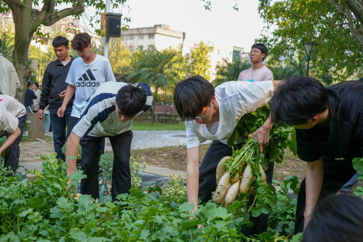 隨著收獲季節(jié)的到來(lái),農(nóng)場(chǎng)里的蘿卜、西蘭花等蔬果迎來(lái)了大豐收。大片翠綠的蘿卜纓隨風(fēng)輕舞,仿佛在向師生們發(fā)出豐收的邀請(qǐng)。師生們手持農(nóng)具,彎腰勞作,開(kāi)啟收獲之旅。不一會(huì)兒,一個(gè)個(gè)潔白飽滿的蘿卜破土而出。