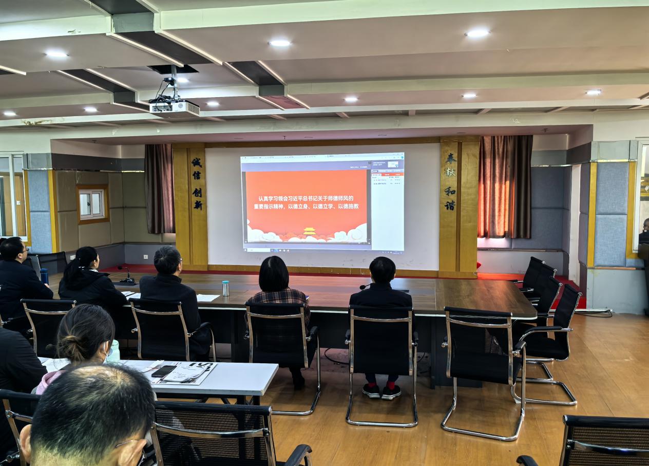 12月18日,組織全體教職工集中學習第三專題“加強理論學習 提高思想認識”《認真學習領會習近平總書記關于師德師風的重要指示精神,以德立身、以德立學、以德施教》
