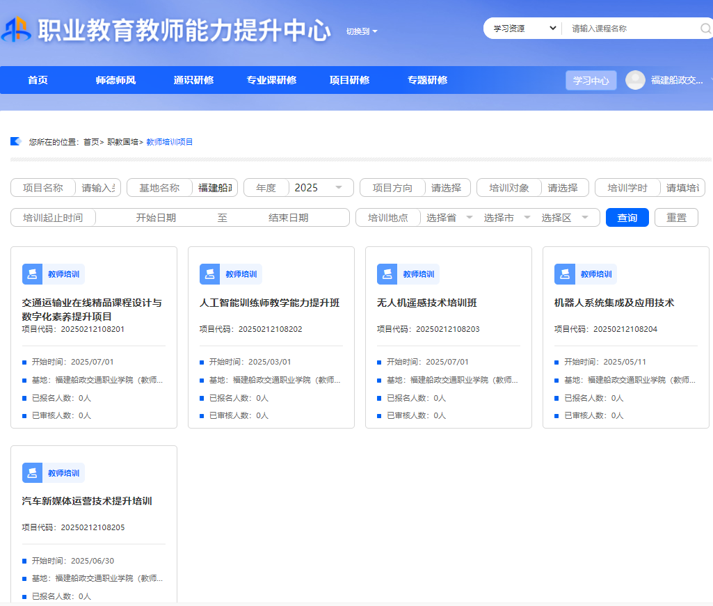 近日,教育部教師工作司公布 2025 年國家級職業(yè)教育教師培訓(xùn)項目評審結(jié)果,我校交通運輸類國家級“雙師型”教師培訓(xùn)基地牽頭申報的5個項目全部入選。項目涵蓋無人機遙感技術(shù)、交通運輸業(yè)在線精品課程設(shè)計、汽車新媒體運營、人工智能訓(xùn)練師教學(xué)能力、機器人系統(tǒng)集成及應(yīng)用技術(shù)等前沿領(lǐng)域,彰顯了我校在職業(yè)教育師資培養(yǎng)方面的實力與前瞻性布局。