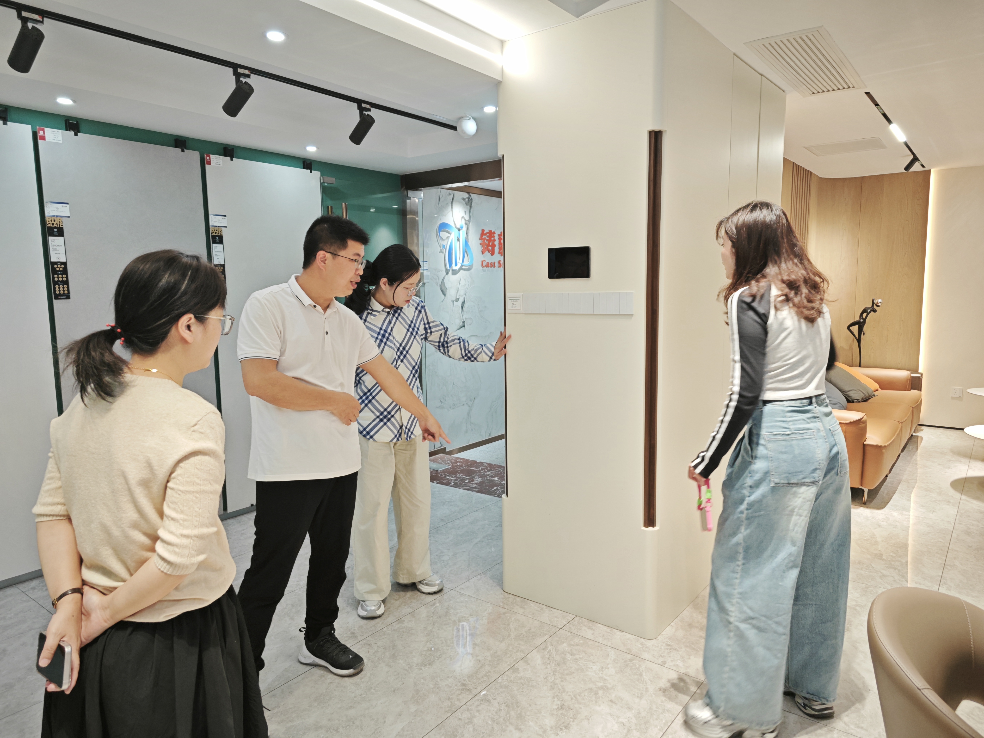 校方教師團隊則重點介紹建筑裝飾工程技術專業(yè)建設成果和人才培養(yǎng)模式。雙方圍繞專業(yè)建設、課程改革、學生實訓基地建設、實習崗位等議題展開深入交流。雙方一致認為,校企合作是培養(yǎng)高素質復合型人才的重要途徑,未來將進一步加大合作交流力度,為學生提供更多優(yōu)質的發(fā)展平臺。座談會結束后,教師團隊參觀了企業(yè)展廳,近距離了解了行業(yè)技術前沿,獲取了優(yōu)化教學內容的一線資料。