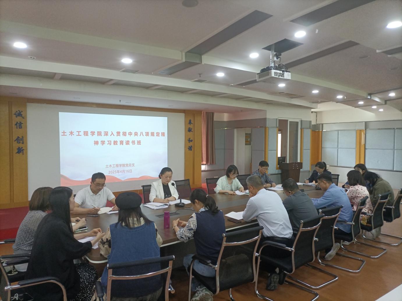 4月16日,土木工程學(xué)院黨總支在創(chuàng)新樓1007舉辦深入貫徹中央八項(xiàng)規(guī)定精神學(xué)習(xí)教育讀書班暨理論學(xué)習(xí)中心組集體學(xué)習(xí)會(huì),深入學(xué)習(xí)貫徹習(xí)近平總書記關(guān)于加強(qiáng)黨的作風(fēng)建設(shè)的重要論述和中央八項(xiàng)規(guī)定及其實(shí)施細(xì)則精神。學(xué)院黨總支理論學(xué)習(xí)中心組成員、支部書記、副書記、實(shí)訓(xùn)中心負(fù)責(zé)人參加會(huì)議,會(huì)議由黨總支書記副書記任穎卿主持。