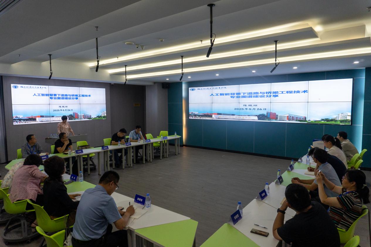 土木工程學院道路與橋梁工程技術專業(yè)教研室主任陳艷瓊教授作了題為《道路與橋梁工程技術專業(yè)圖譜建設的創(chuàng)新實踐》的專題報告,從“標準引領、技術賦能、產教協(xié)同”三個維度,詳細介紹了我院在專業(yè)圖譜建設方面的創(chuàng)新路徑、階段性成果及典型應用案例,分享了“崗課賽證”綜合育人模式改革經驗。土木工程學院院長黃穎教授對專題報告進行點評。
