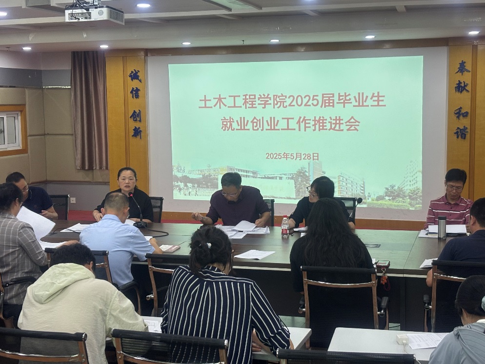 為深入貫徹落實國家關于高校畢業(yè)生就業(yè)創(chuàng)業(yè)工作部署,推動畢業(yè)生高質量充分就業(yè),2025年5月28日,土木工程學院于福船園創(chuàng)新樓1007召開2025屆畢業(yè)生就業(yè)創(chuàng)業(yè)工作推進會。學院領導班子、各教研室主任、畢業(yè)班輔導員及頂崗實習指導老師參會,會議由黨總支副書記任穎卿主持。