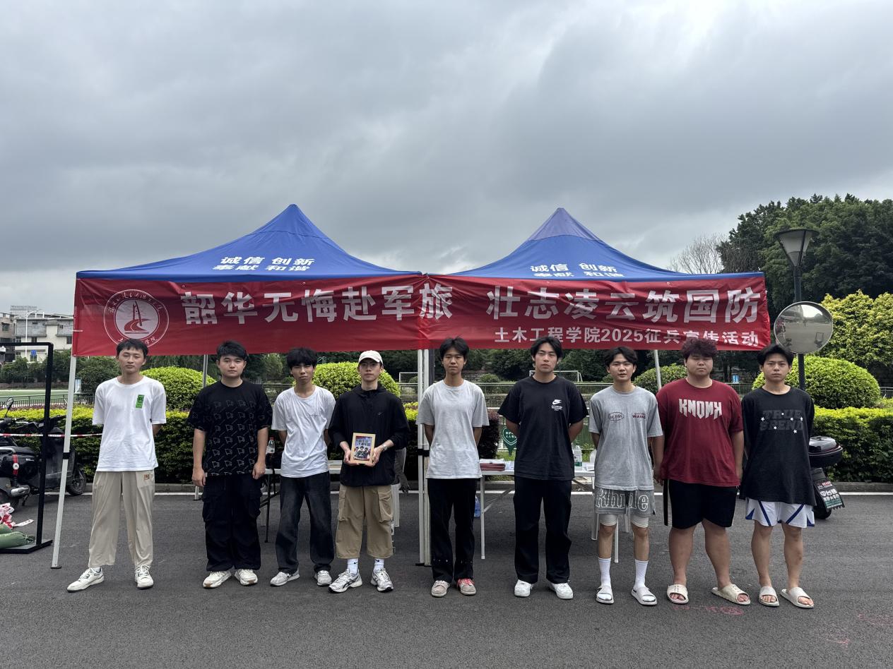 為增強同學們的愛國情懷,激發(fā)大學生參軍入伍的積極性,鼓勵有志青年響應國家號召,投身到國防建設事業(yè)中。2025年6月11日,土木工程學院于福船園創(chuàng)新樓前組織開展2025年征兵宣傳活動。