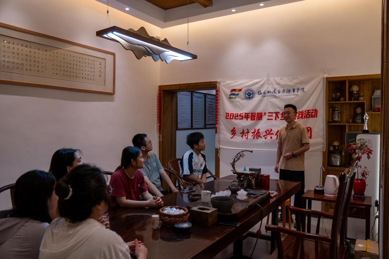 實(shí)踐期間,實(shí)踐團(tuán)有幸迎來(lái)了一位以實(shí)干助力鄉(xiāng)村振興的優(yōu)秀校友——鄭永琪。作為福建省2024屆選調(diào)生,他于2024年7月主動(dòng)投身基層,來(lái)到連城縣朋口鎮(zhèn)朋城村擔(dān)任黨支部書(shū)記助理。這片兼具地理優(yōu)勢(shì)與產(chǎn)業(yè)活力的土地,正需要年輕力量的注入:這里是205國(guó)道與319國(guó)道交匯處,毗鄰冠豸山南動(dòng)車(chē)站,蘭花產(chǎn)業(yè)形成“黨建+合作社+農(nóng)戶(hù)”的全產(chǎn)業(yè)鏈,家具產(chǎn)業(yè)憑借豐富林竹資源聚集成群,還有多家名優(yōu)企業(yè)帶動(dòng)就業(yè)與稅收。