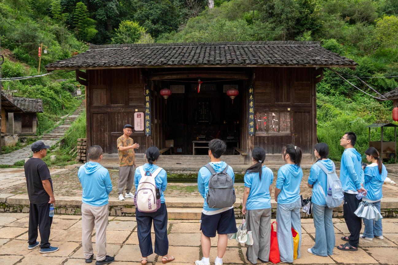 在斑駁的樹影與幽深的巷道間,紅色印記同樣清晰可辨:為方便紅軍在山地行軍作戰(zhàn),毛澤東同志親自參與將尖頂斗笠改良為圓頂斗笠,這頂看似普通的斗笠,既是適應(yīng)戰(zhàn)場的實(shí)用裝備,更凝結(jié)著領(lǐng)袖對基層實(shí)際需求的深切關(guān)切;革命戰(zhàn)爭年代,丁屋村 74 位客家兒女從這片土地出發(fā),在閩西的崇山峻嶺間穿梭,默默傳遞情報(bào)、支援前線,用熱血書寫忠誠。漫步古村,實(shí)踐隊(duì)深切體悟到客家先民將生存智慧與革命信念熔鑄一體的力量,這股力量激勵(lì)著我們學(xué)習(xí)客家人的務(wù)實(shí)堅(jiān)韌,永遠(yuǎn)銘記那份沉甸甸的紅色擔(dān)當(dāng)。