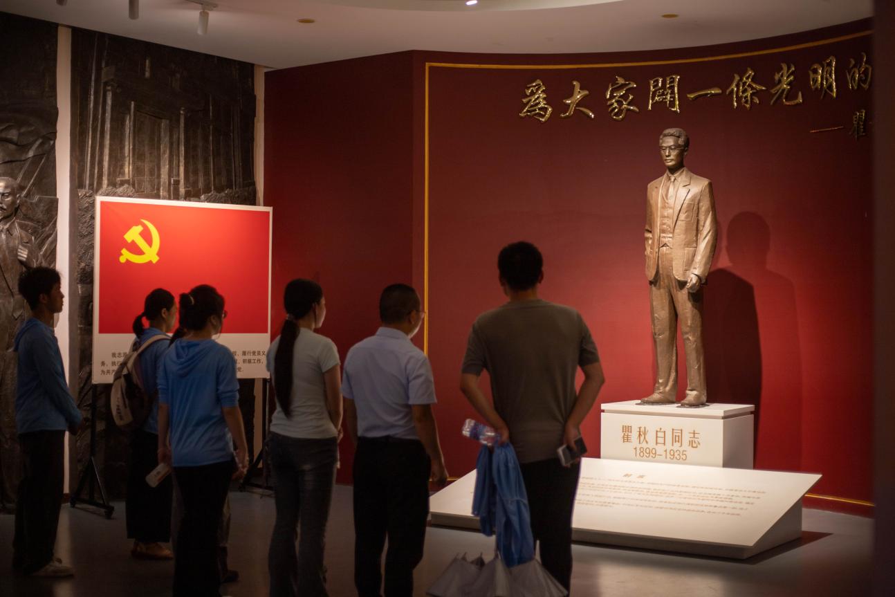 圖1:實(shí)踐團(tuán)師生在瞿秋白紀(jì)念館瞻仰瞿秋白同志的雕像