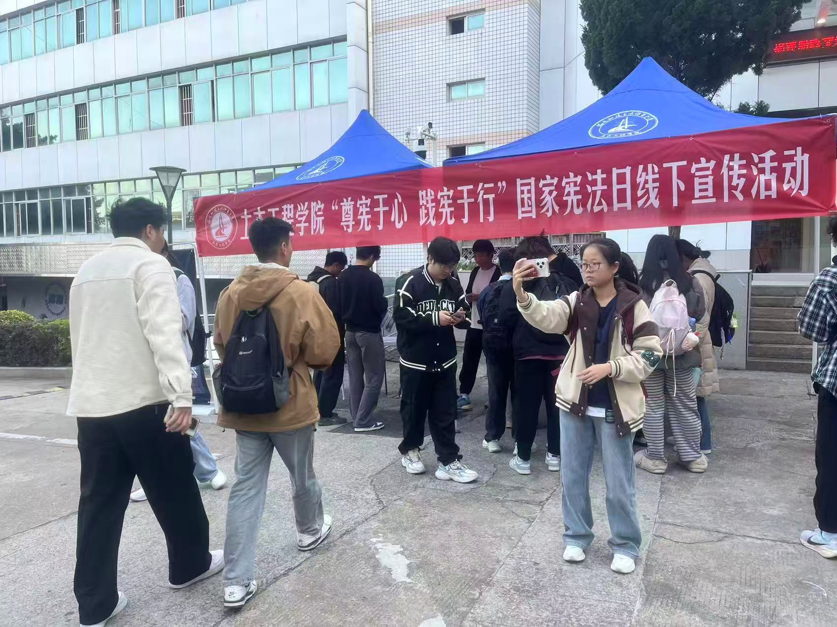 為深入學習宣傳貫徹習近平法治思想,推動憲法精神在青少年心中落地生根。2025年12月4日,在第十二個國家憲法日來臨之際,土木工程學院于福航園“一站式”學生社區(qū)服務(wù)中心開展“尊憲于心 踐憲于行”國家憲法日線下宣傳活動。