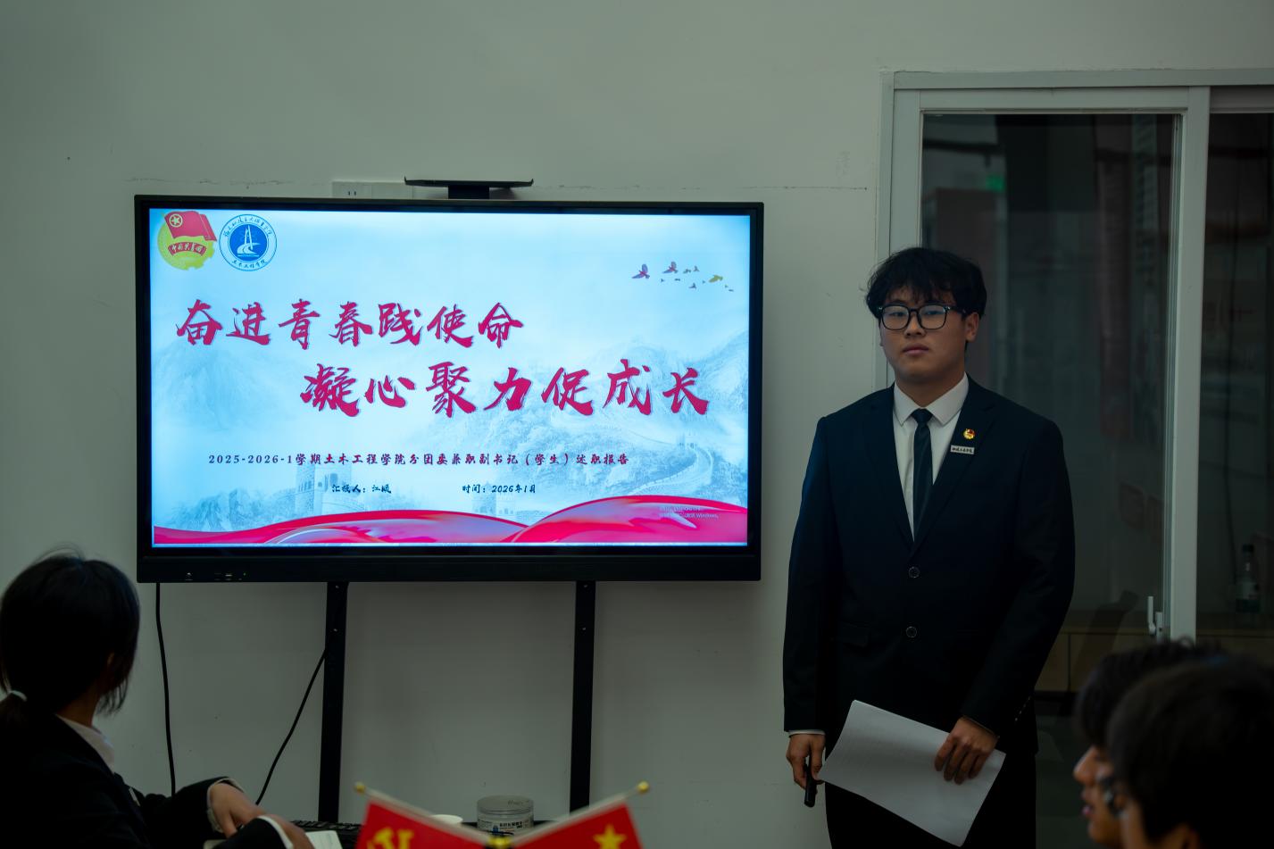 為推進(jìn)團(tuán)學(xué)組織建設(shè)標(biāo)準(zhǔn)化、精細(xì)化、科學(xué)化,錘煉學(xué)生干部的責(zé)任擔(dān)當(dāng)與履職能力,夯實(shí)團(tuán)學(xué)組織作為黨聯(lián)系青年學(xué)生的堅(jiān)實(shí)橋梁,全面梳理階段工作成效、剖析現(xiàn)存問(wèn)題短板、明晰后續(xù)改進(jìn)方向、凝聚團(tuán)隊(duì)奮進(jìn)合力。2026年1月8日,土木工程學(xué)院團(tuán)委于福航園“一站式”學(xué)生社區(qū)召開(kāi)2025年學(xué)院團(tuán)委年度、學(xué)生會(huì)下半年述職評(píng)議會(huì)。學(xué)院團(tuán)委指導(dǎo)老師,團(tuán)委及學(xué)生會(huì)學(xué)生干部參加本次會(huì)議。