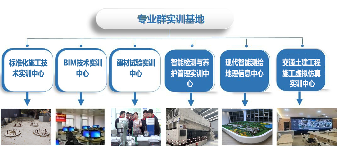 交通土建專業(yè)群實(shí)訓(xùn)基地是“國家高等職業(yè)院校創(chuàng)新行動(dòng)計(jì)劃校企共建生產(chǎn)性實(shí)訓(xùn)基地”,2020入選福建省省級職業(yè)院校高水平專業(yè)化產(chǎn)教融合實(shí)訓(xùn)基地。與省內(nèi)外60多家知名企業(yè)合作共建覆蓋交通基礎(chǔ)設(shè)施設(shè)計(jì)、施工、管養(yǎng)等全領(lǐng)域的校內(nèi)外實(shí)訓(xùn)基地,充分滿足學(xué)生學(xué)員實(shí)習(xí)實(shí)訓(xùn)需求。為國家“1+X”證書建筑信息模型(BIM)、無人機(jī)技術(shù)、無損檢測技術(shù)、裝配式技術(shù),交通部施工現(xiàn)場專業(yè)人員培訓(xùn)及考核基地。經(jīng)過多年建設(shè)發(fā)展,校內(nèi)現(xiàn)有各類實(shí)訓(xùn)場館及科研場所建筑面積8000多平方米,室外實(shí)訓(xùn)場地約30000平方米,包含土木工程數(shù)字化融創(chuàng)中心、現(xiàn)代智能測繪技術(shù)技能中心、智慧檢測實(shí)訓(xùn)基地、交通土建標(biāo)準(zhǔn)化智慧實(shí)訓(xùn)基地、施工工藝虛擬仿真實(shí)訓(xùn)中心、產(chǎn)教融合實(shí)訓(xùn)基地等18個(gè)校內(nèi)實(shí)訓(xùn)基地。主要實(shí)驗(yàn)實(shí)訓(xùn)臺(tái)套數(shù)近2200臺(tái)套(工位),設(shè)備總價(jià)值約3000萬元。實(shí)踐教學(xué)條件處于國內(nèi)同類院校同類專業(yè)領(lǐng)先水平。