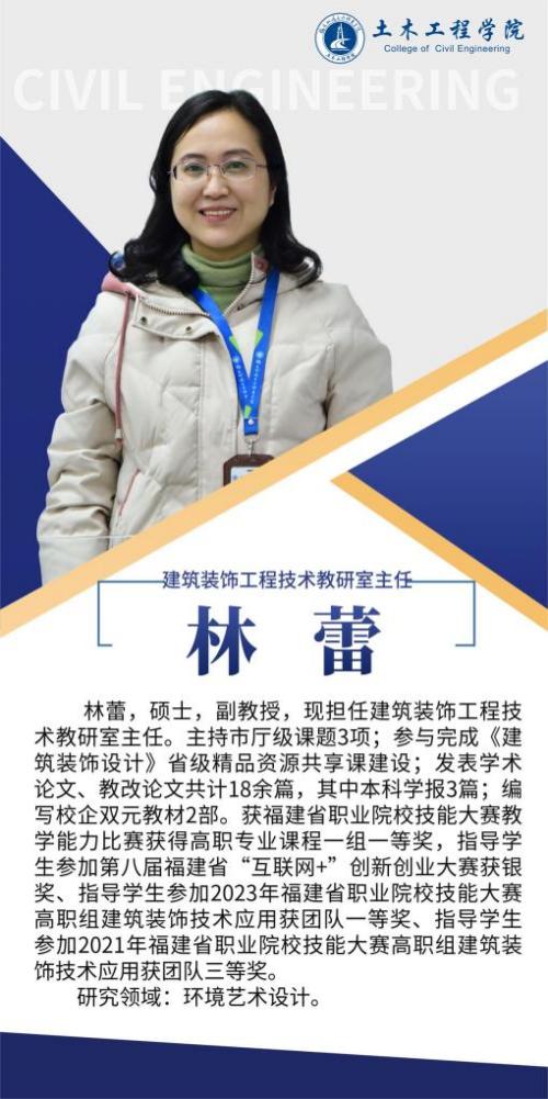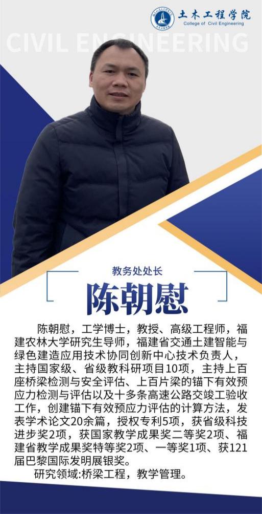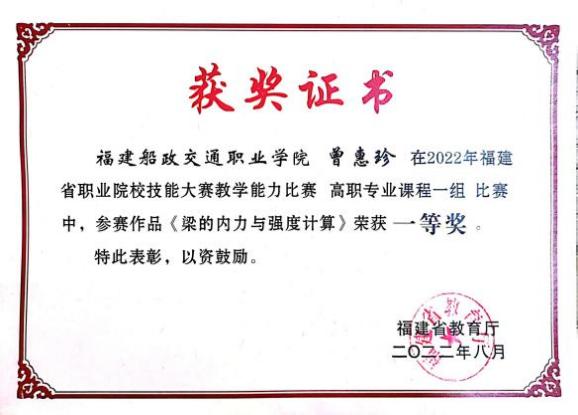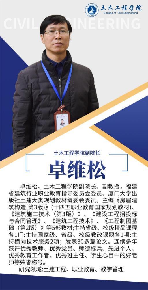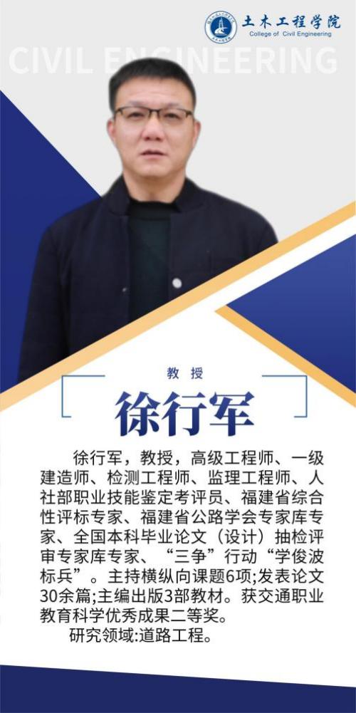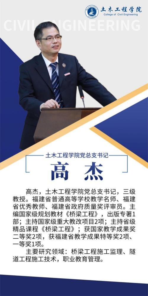 堅持黨建引領(lǐng),扎實推進(jìn)師資隊伍建設(shè),土木工程學(xué)院黨總支是全省先進(jìn)基層黨組織,第二支部為省級樣板支部,第四黨支部為省“雙帶頭人”教師黨支部書記工作室,并入選全國黨建工作樣板支部。土木工程學(xué)院現(xiàn)有專任教師92人,其中副教授等副高以上職稱教師55人,具有博士學(xué)位教師10人,省級教學(xué)名師1人,省優(yōu)秀教師3人,省高職高專專業(yè)帶頭人1人,專任教師中具備雙師素質(zhì)的達(dá)到95%以上。另有一批專業(yè)領(lǐng)軍人才、大師名匠等組成的兼職教師隊伍,形成了高水平的“雙師雙能”教學(xué)團(tuán)隊。在先進(jìn)基層黨組織示范帶動下,道路與橋梁工程技術(shù)專業(yè)教學(xué)創(chuàng)新團(tuán)隊入選第三批國家級職業(yè)教育教師創(chuàng)新團(tuán)隊立項(培育)建設(shè)單位名單,團(tuán)隊成員參與獲得國家級教學(xué)成果二等獎2項,福建省教學(xué)成果特等獎1項,一等獎2項,教師參加省級以上教學(xué)能力比賽獲一等獎2項,二等獎1項,三等獎5項。