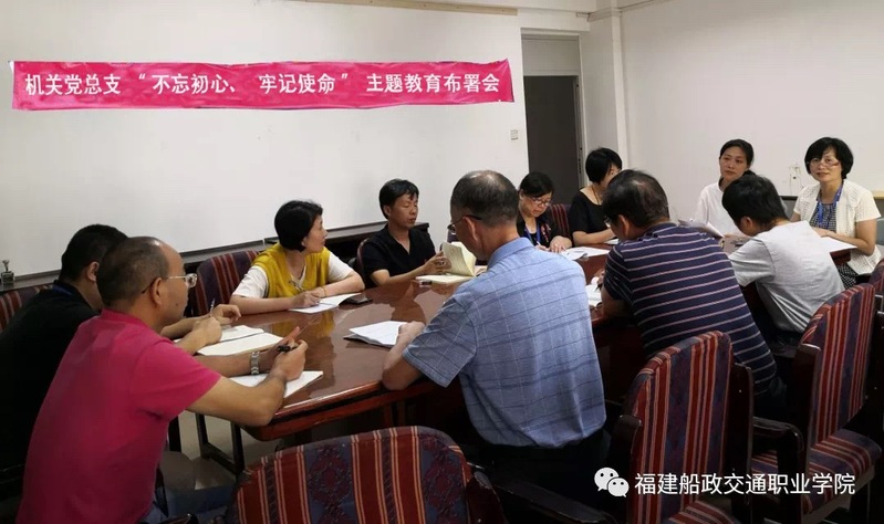 2019年9月20日上午,機(jī)關(guān)黨總支召開“不忘初心、牢記使命”主題教育部署會(huì)。會(huì)議要求,機(jī)關(guān)各支部要以開展“立足崗位、建功時(shí)代”為主題,各支部(部門)主動(dòng)深入系部認(rèn)真傾聽師生對機(jī)關(guān)服務(wù)的訴求,為師生解惑排難,切實(shí)轉(zhuǎn)變機(jī)關(guān)工作作風(fēng),創(chuàng)新工作方法,樹立為師生服務(wù)的理念。