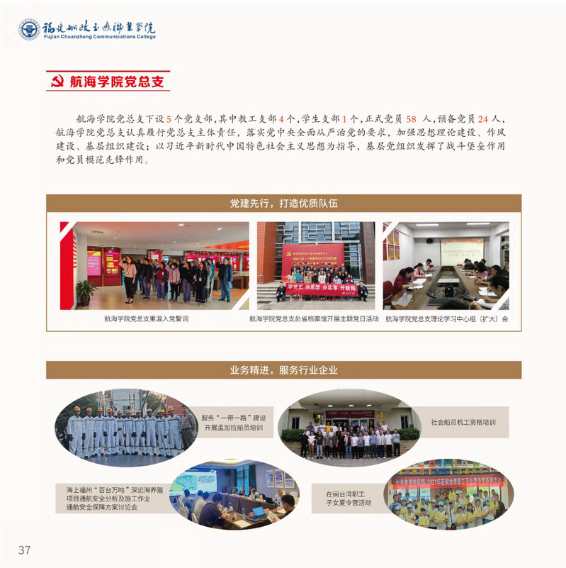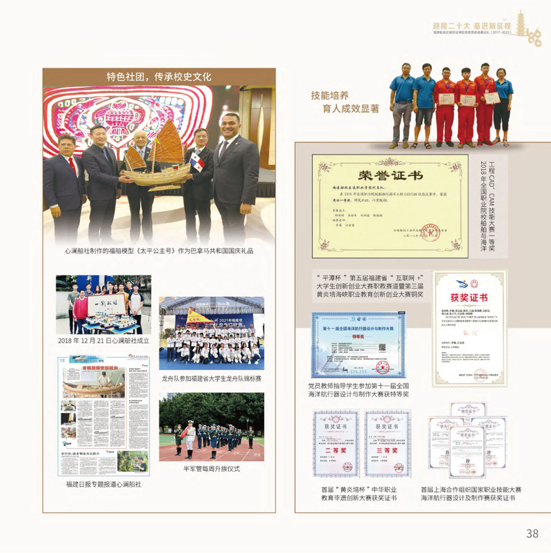 十九大以來,福建船政交通職業(yè)學(xué)院堅(jiān)持以習(xí)近平新時(shí)代中國特色社會主義思想為指導(dǎo),堅(jiān)持社會主義辦學(xué)方向,深入貫徹黨的十九大和十九屆歷次全會精神,堅(jiān)守“為黨育人、為國育才”的初心和使命,慎終如始推進(jìn)學(xué)校黨的政治建設(shè)、思想建設(shè)、組織建設(shè)、作風(fēng)建設(shè)、紀(jì)律建設(shè)、制度建設(shè),黨的組織體系和學(xué)校治理體系相得益彰,黨建引領(lǐng)推動創(chuàng)新船政、質(zhì)量船政、文化船政協(xié)奏齊鳴,政治生態(tài)、學(xué)術(shù)生態(tài)、文化生態(tài)持續(xù)向好,辦學(xué)效率、辦學(xué)效能、辦學(xué)效益顯著提升!