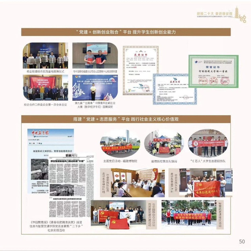 十九大以來,福建船政交通職業(yè)學院堅持以習近平新時代中國特色社會主義思想為指導,堅持社會主義辦學方向,深入貫徹黨的十九大和十九屆歷次全會精神,堅守“為黨育人、為國育才”的初心和使命,慎終如始推進學校黨的政治建設(shè)、思想建設(shè)、組織建設(shè)、作風建設(shè)、紀律建設(shè)、制度建設(shè),黨的組織體系和學校治理體系相得益彰,黨建引領(lǐng)推動創(chuàng)新船政、質(zhì)量船政、文化船政協(xié)奏齊鳴,政治生態(tài)、學術(shù)生態(tài)、文化生態(tài)持續(xù)向好,辦學效率、辦學效能、辦學效益顯著提升!