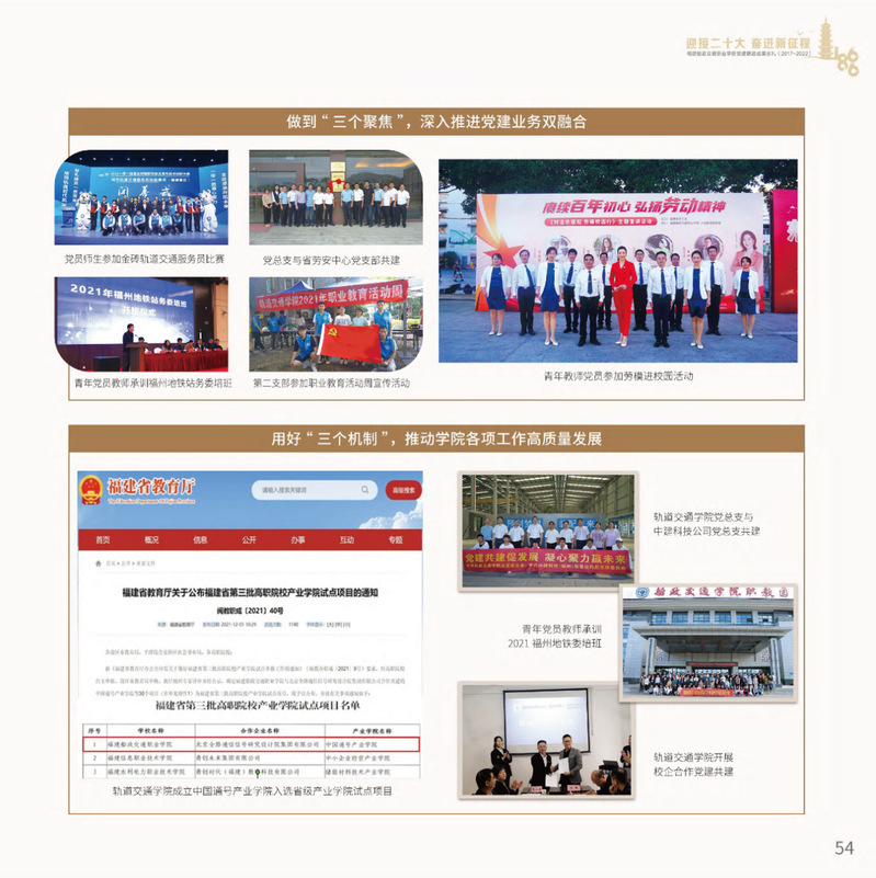 十九大以來,福建船政交通職業(yè)學(xué)院堅持以習(xí)近平新時代中國特色社會主義思想為指導(dǎo),堅持社會主義辦學(xué)方向,深入貫徹黨的十九大和十九屆歷次全會精神,堅守“為黨育人、為國育才”的初心和使命,慎終如始推進學(xué)校黨的政治建設(shè)、思想建設(shè)、組織建設(shè)、作風(fēng)建設(shè)、紀(jì)律建設(shè)、制度建設(shè),黨的組織體系和學(xué)校治理體系相得益彰,黨建引領(lǐng)推動創(chuàng)新船政、質(zhì)量船政、文化船政協(xié)奏齊鳴,政治生態(tài)、學(xué)術(shù)生態(tài)、文化生態(tài)持續(xù)向好,辦學(xué)效率、辦學(xué)效能、辦學(xué)效益顯著提升!