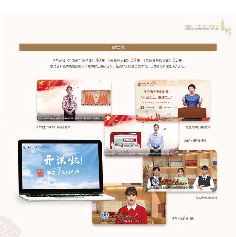 教育黨員有力 今年是黨的二十大召開之年,是學校深化綜合改革、加快“雙高”建設的關鍵年,是續(xù)寫過去5年工作、回首新時代10年變革的轉(zhuǎn)折年。站在新的歷史起點上,船政交通人將始終沿著習近平總書記親自為福建擘畫的最美山水圖、沿革船政先賢留下的文化瑰寶、延續(xù)一代代船政交通人接續(xù)奮斗的精神,以飽滿的精神、昂揚的斗志、奮進的狀態(tài),開啟建設中國特色高水平高職學校的新征程,以優(yōu)異成績慶祝黨的二十大勝利召開!