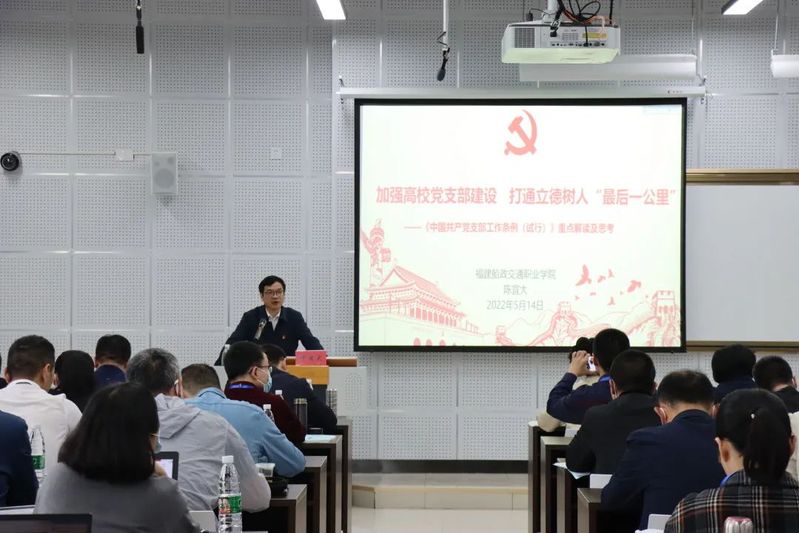 本次培訓(xùn)班以“黨建與事業(yè)發(fā)展深度融合、以高質(zhì)量黨建引領(lǐng)高質(zhì)量發(fā)展”為主題,5月4日先行在國(guó)家教育行政學(xué)院平臺(tái)開展黨支部書記培訓(xùn)班線上教學(xué);5月13日-15日開展線下培訓(xùn)和考核交流。在線下培訓(xùn)班上,學(xué)院黨委副書記陳宜大作題為《加強(qiáng)高校黨支部建設(shè) 打通立德樹人“最后一公里”》輔導(dǎo)報(bào)告;邀請(qǐng)福建省首批“雙帶頭人”黨支部書記工作室福建農(nóng)林大學(xué)園藝學(xué)院設(shè)施農(nóng)業(yè)科學(xué)與工程教工黨支部書記邱棟梁教授介紹高校黨支部在黨建與業(yè)務(wù)工作深度融合方面的做法。