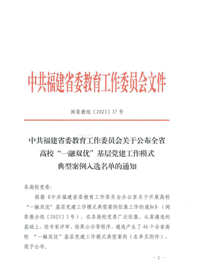近日,省委教育工委公布全省高?!耙蝗陔p優(yōu)”基層黨建工作模式典型案例入選名單。我院黨委選送的《黨建領(lǐng)航 思政鑄魂“一經(jīng)一緯”織就“三課堂”育人之路》入選高職高專組基層黨組織“一融雙優(yōu)”工作案例,《基層黨總支創(chuàng)新“1-2-4”雙培工作機制 著力讓一批優(yōu)秀學(xué)生成為優(yōu)秀黨員骨干群體》入選高職高專組師生黨員“雙培”工作案例。